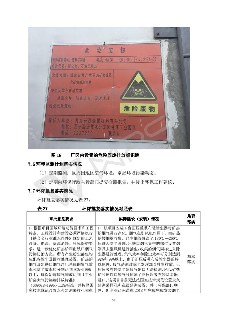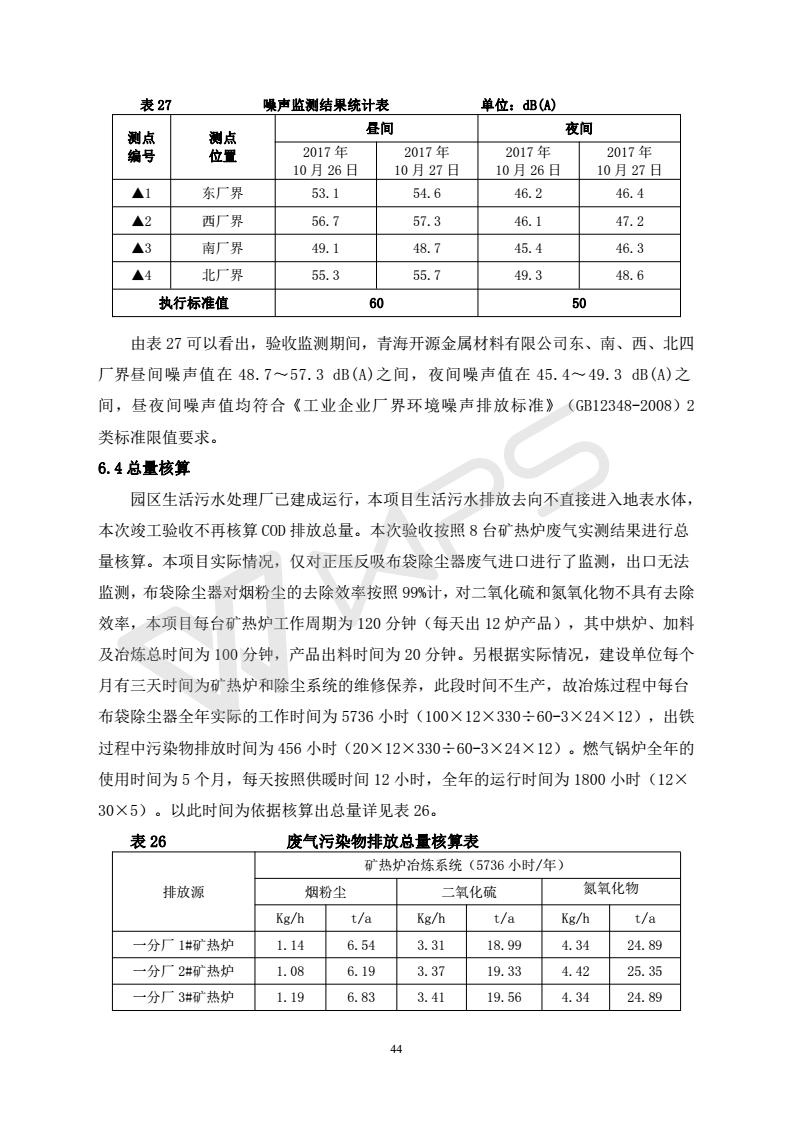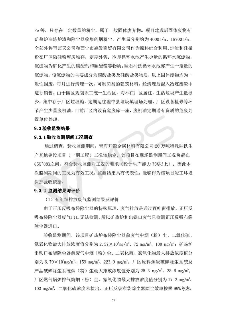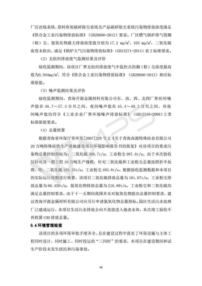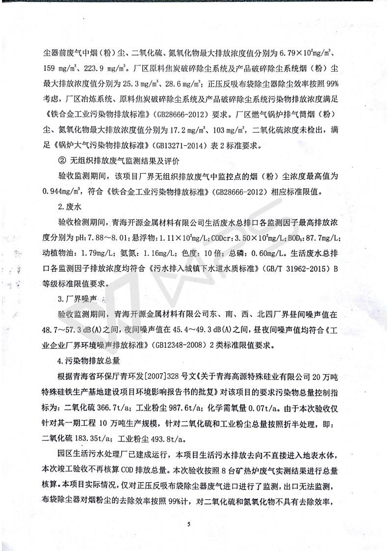 青海開源金屬材料有限公司20萬噸特殊硅鐵生產(chǎn)基地建設項目(一期工程)竣工環(huán)境保護驗收報告書會后修改20180521