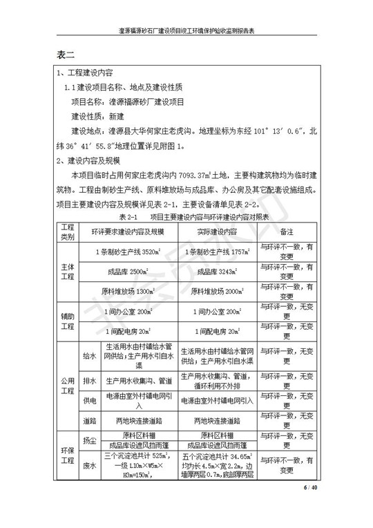 根據(jù)中華人民共和國國務(wù)院令第253號《建設(shè)項目環(huán)境保護管理條例》(中華人民共和國國務(wù)院令第682號《國務(wù)院關(guān)于修改〈建設(shè)項目環(huán)境保護管理條例〉的決定》和《建設(shè)項目竣工環(huán)境保護驗收暫行辦法》,嚴格依照有關(guān)法律法規(guī),建設(shè)項目環(huán)境保護設(shè)施驗收技術(shù)規(guī)范,本項目環(huán)評報告表和環(huán)保審批部門審批意見以及企業(yè)自行驗收相關(guān)要求等對本項目進行驗收,本項目符合環(huán)保驗收條件,可以通過環(huán)保驗收。 湟源福砂廠建設(shè)項目竣工環(huán)境保護驗收意見