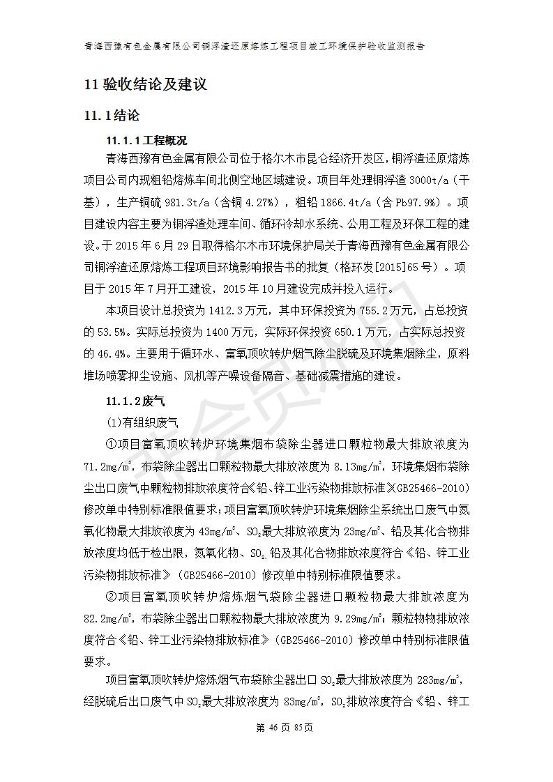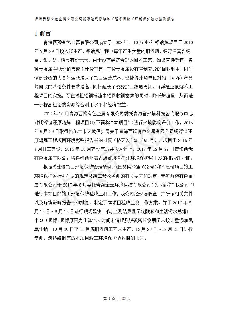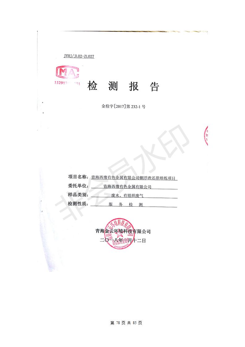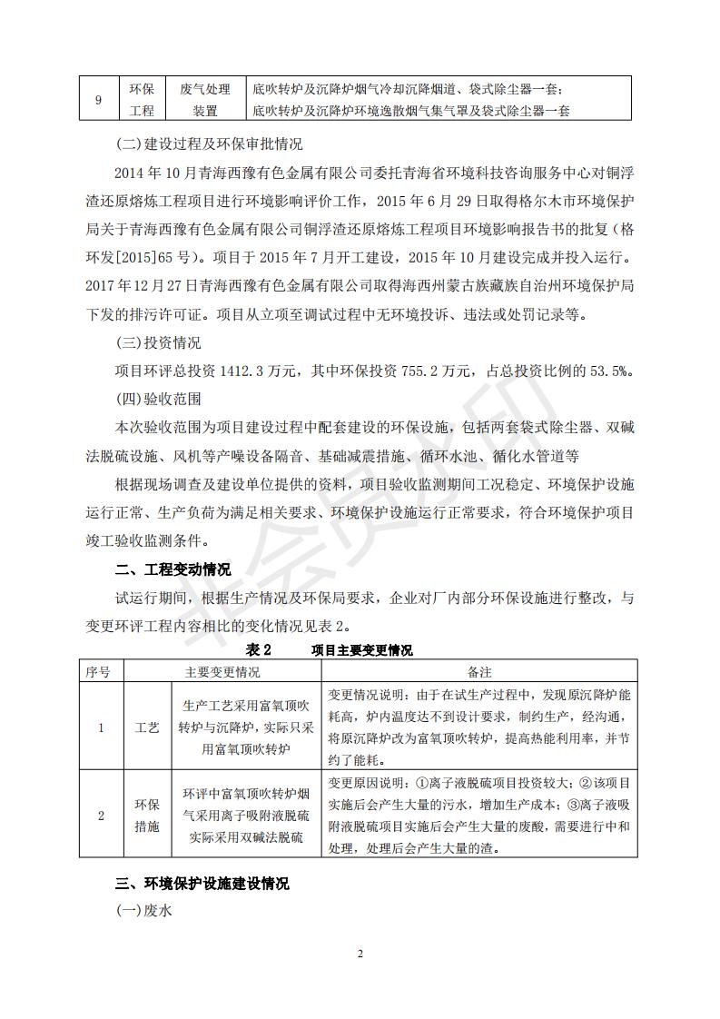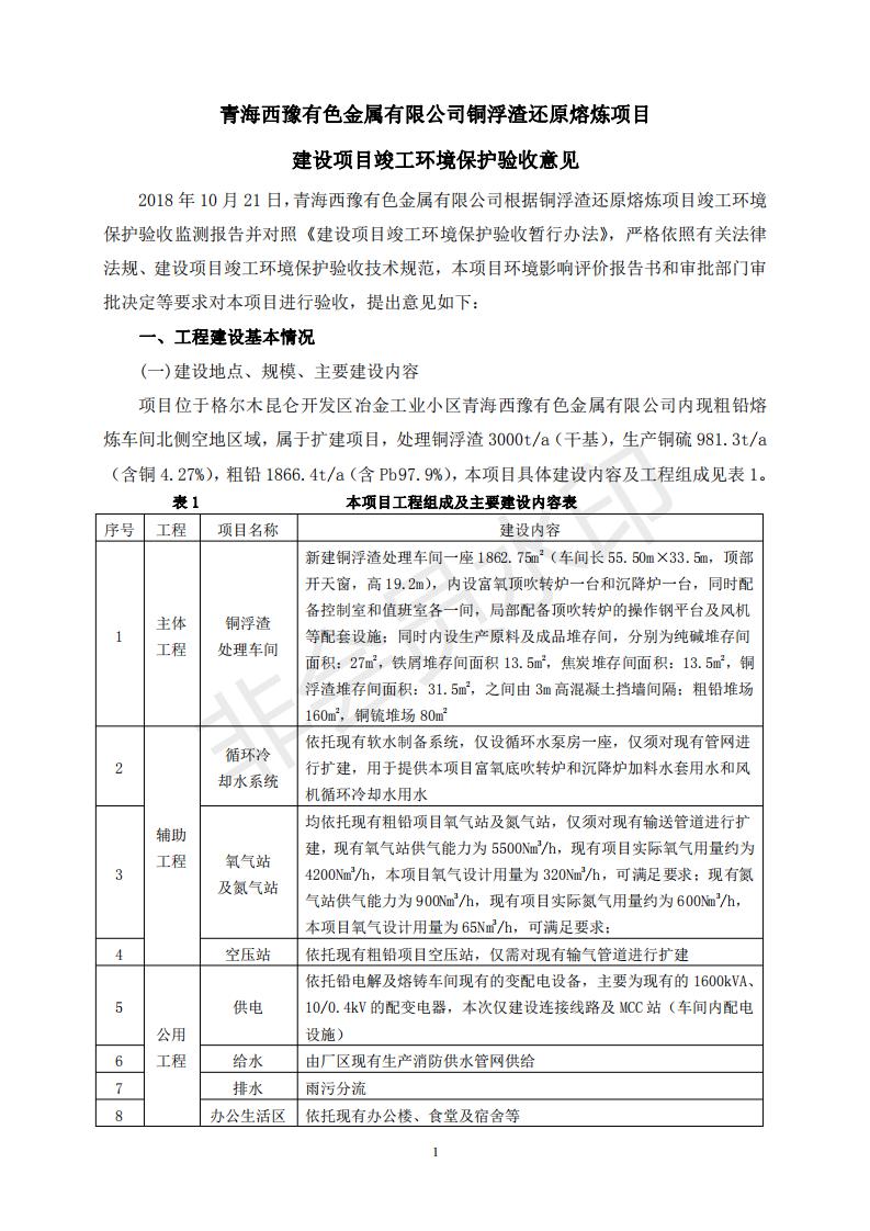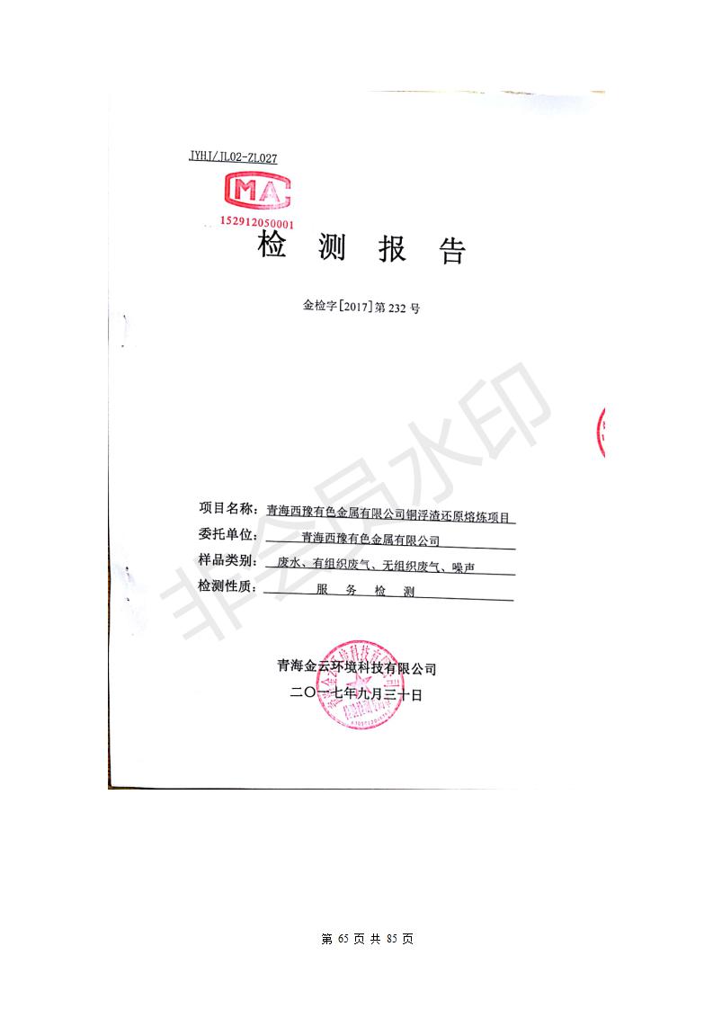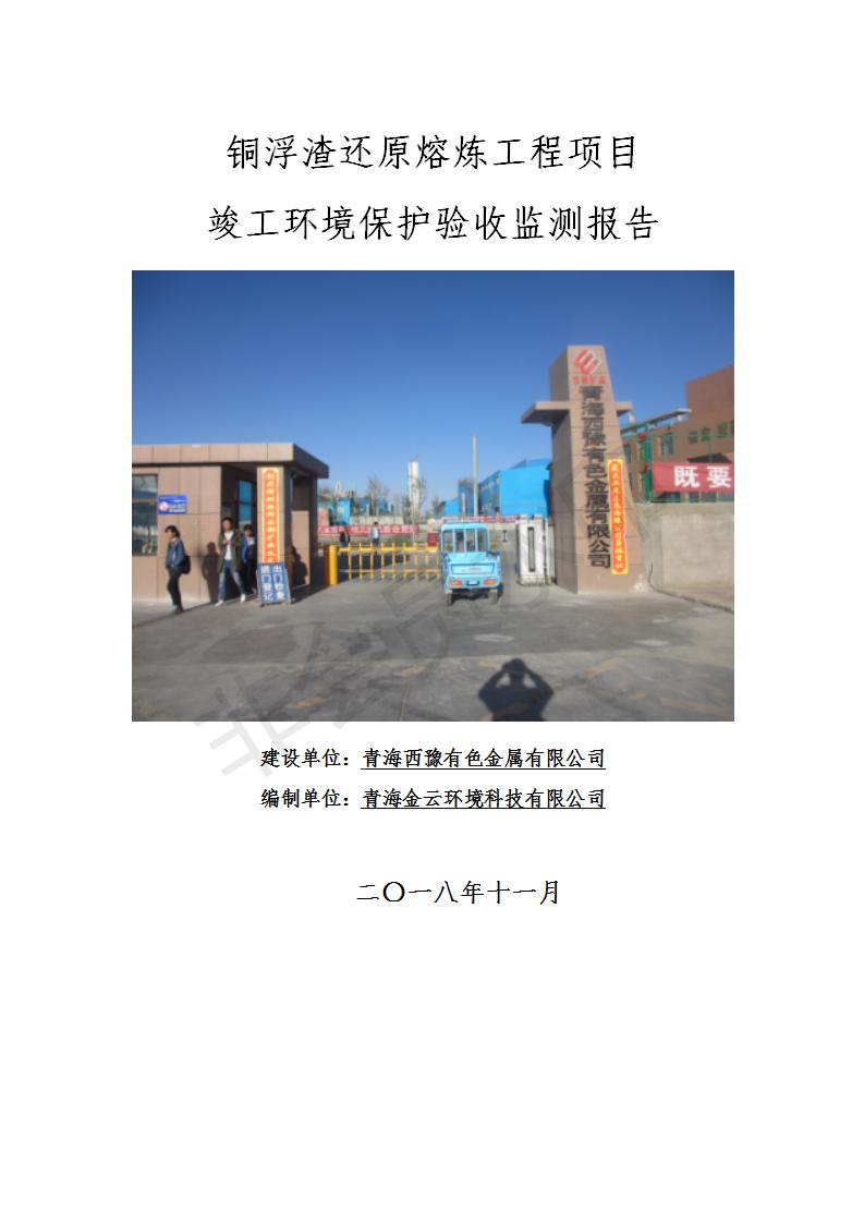 青海西豫有色金屬有限公司銅浮渣還原熔煉工程項(xiàng)目竣工環(huán)境保護(hù)驗(yàn)收監(jiān)測(cè)報(bào)告公示發(fā)布日期:(2018-11-23) 點(diǎn)擊次數(shù):2570 |