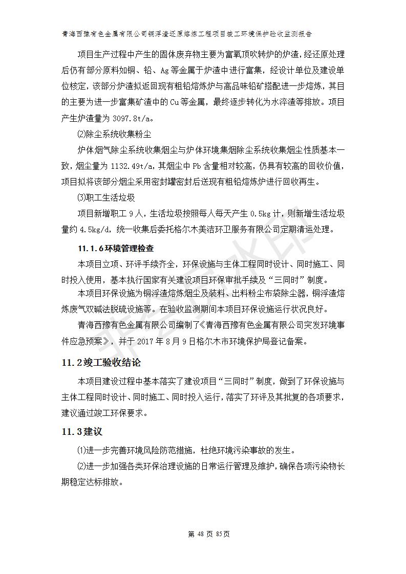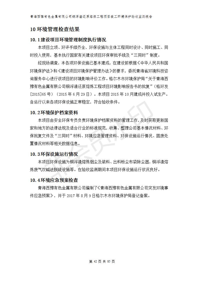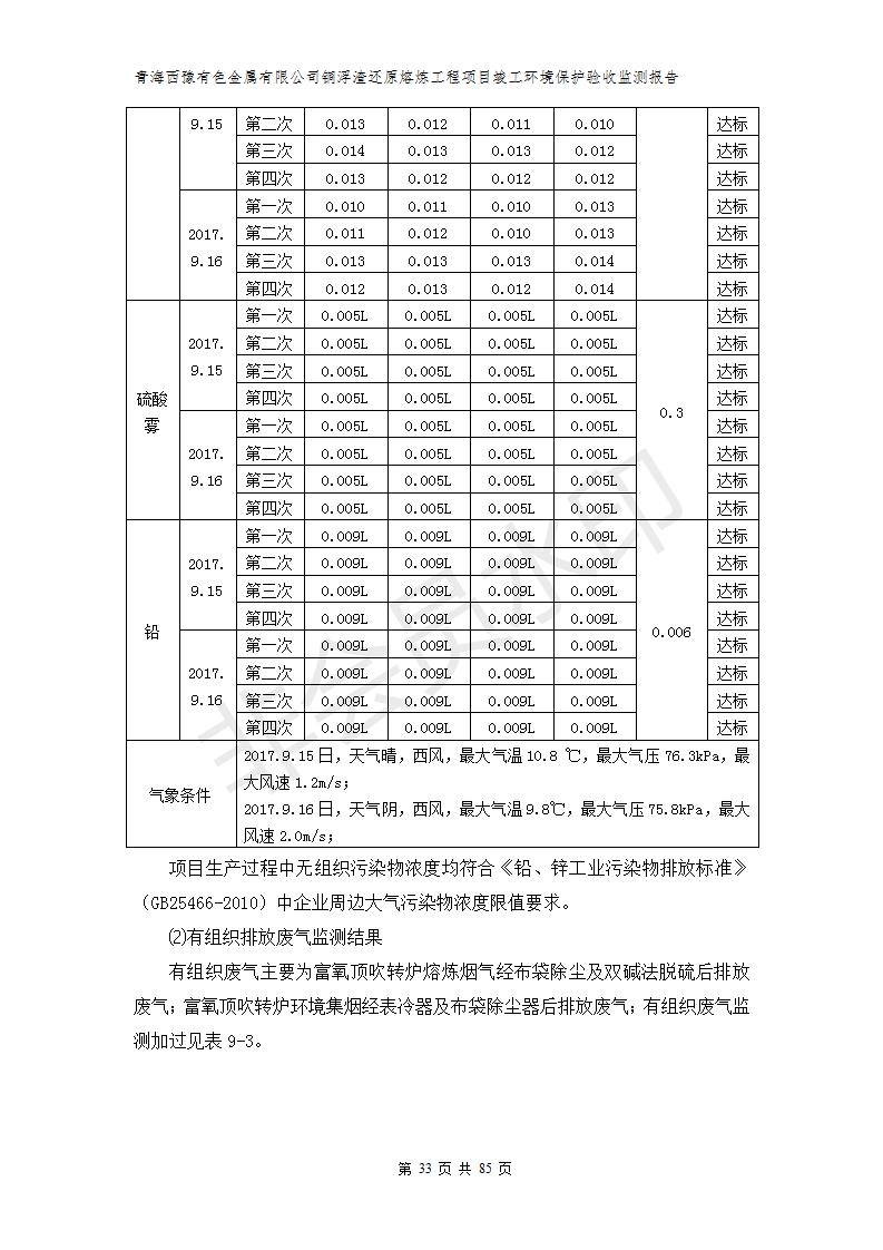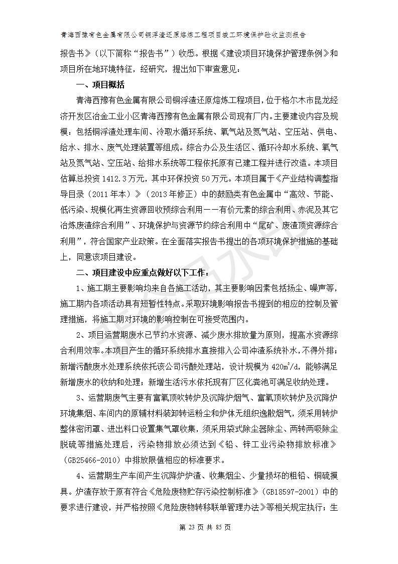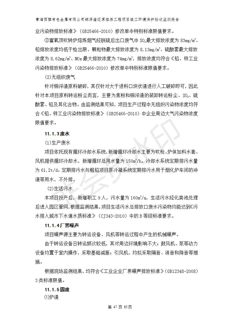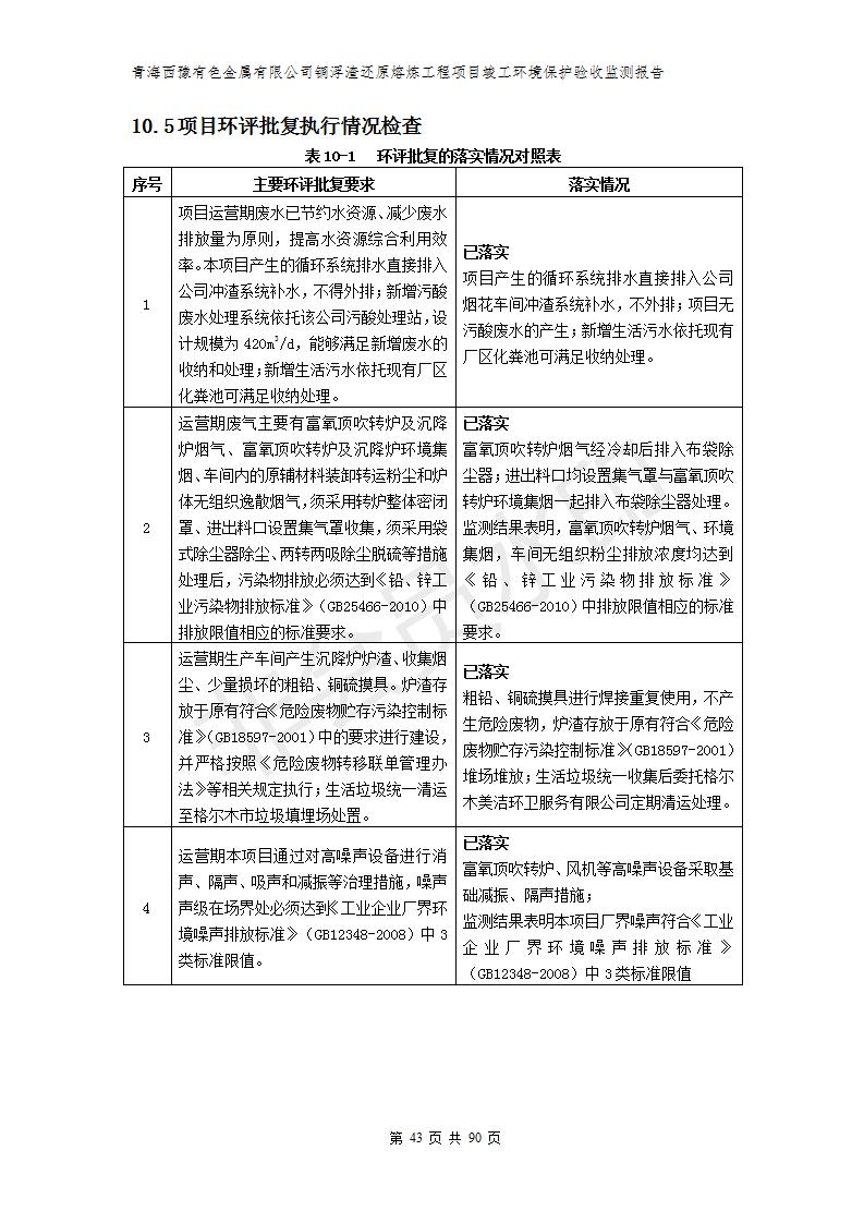 青海西豫有色金屬有限公司銅浮渣還原熔煉工程項(xiàng)目竣工環(huán)境保護(hù)驗(yàn)收監(jiān)測(cè)報(bào)告公示發(fā)布日期:(2018-11-23) 點(diǎn)擊次數(shù):2570 |