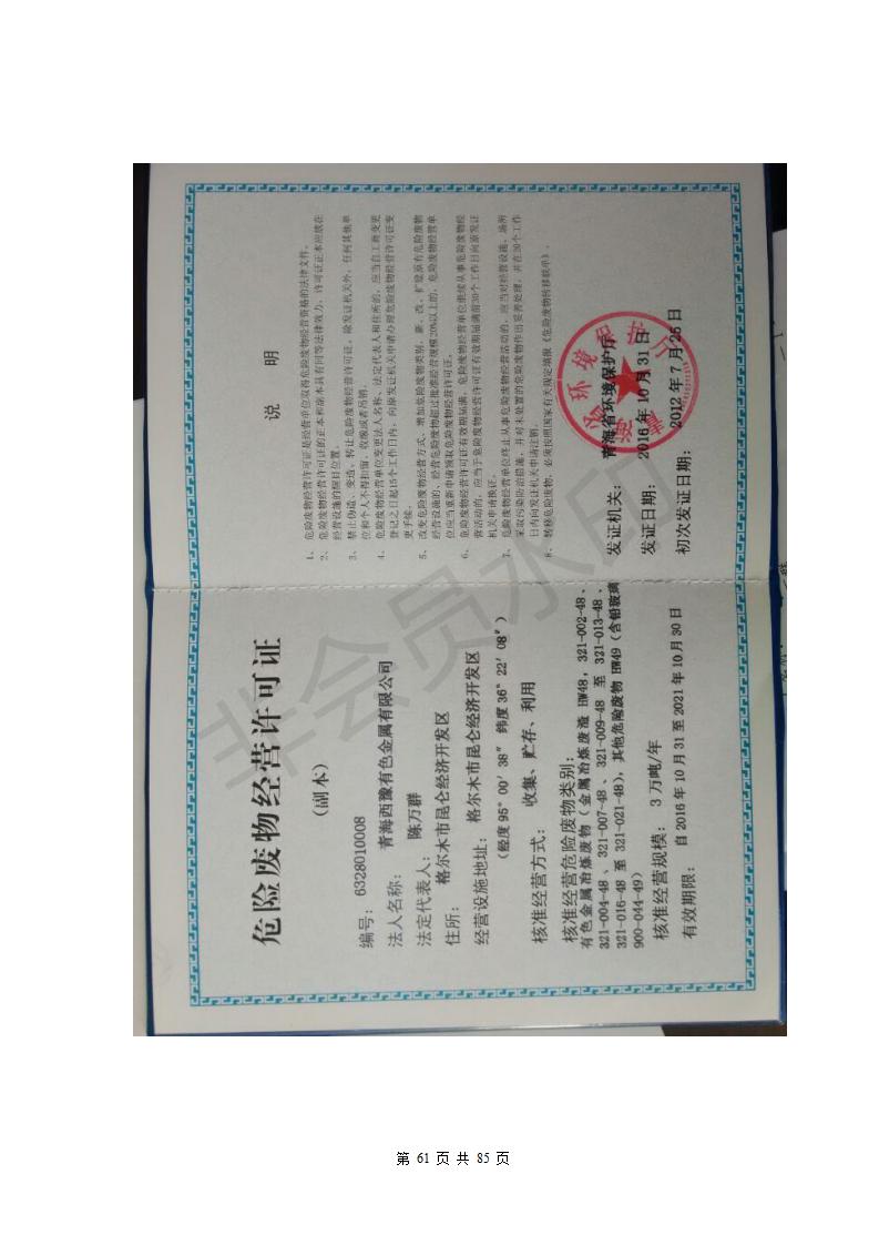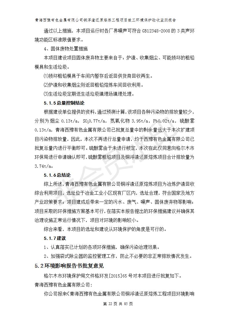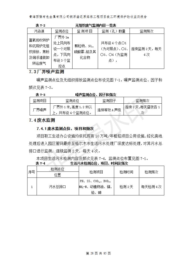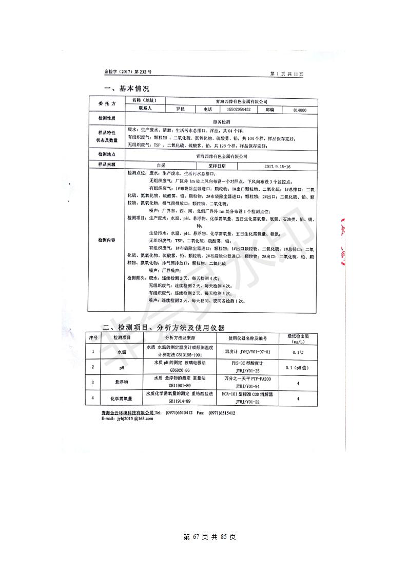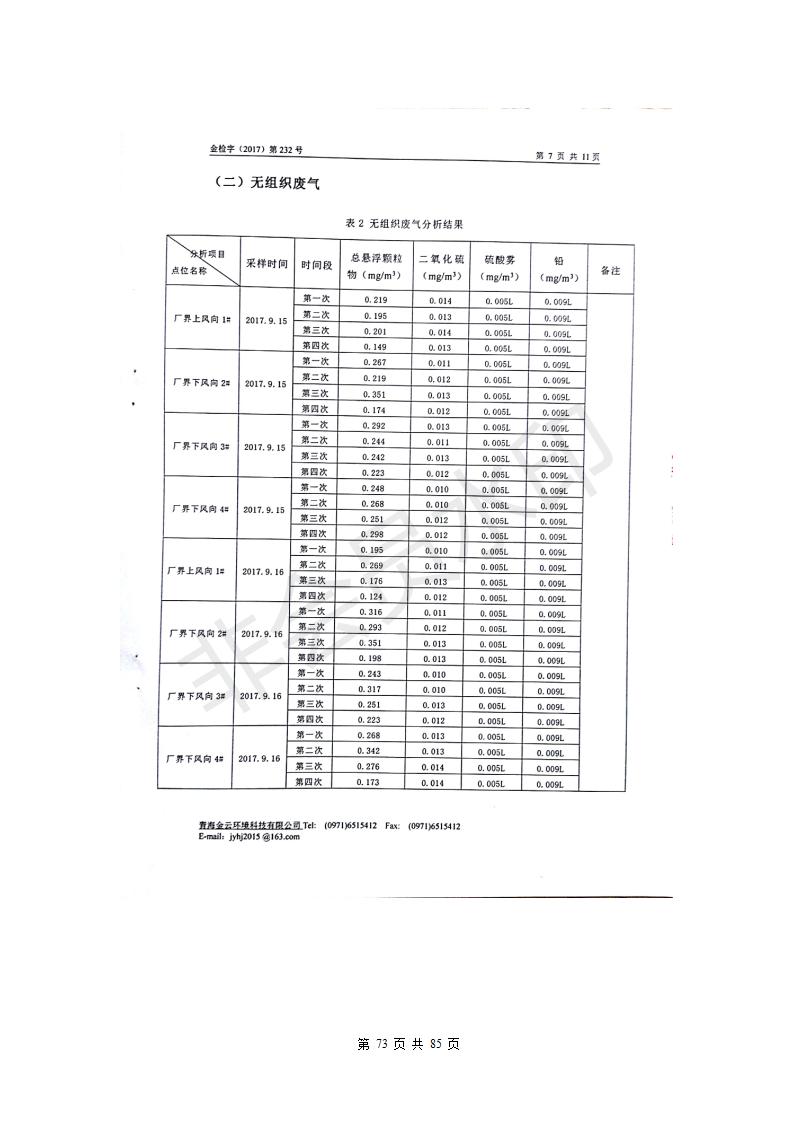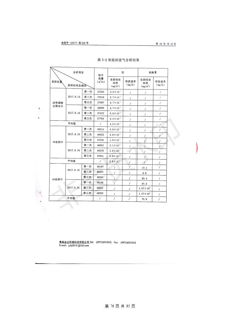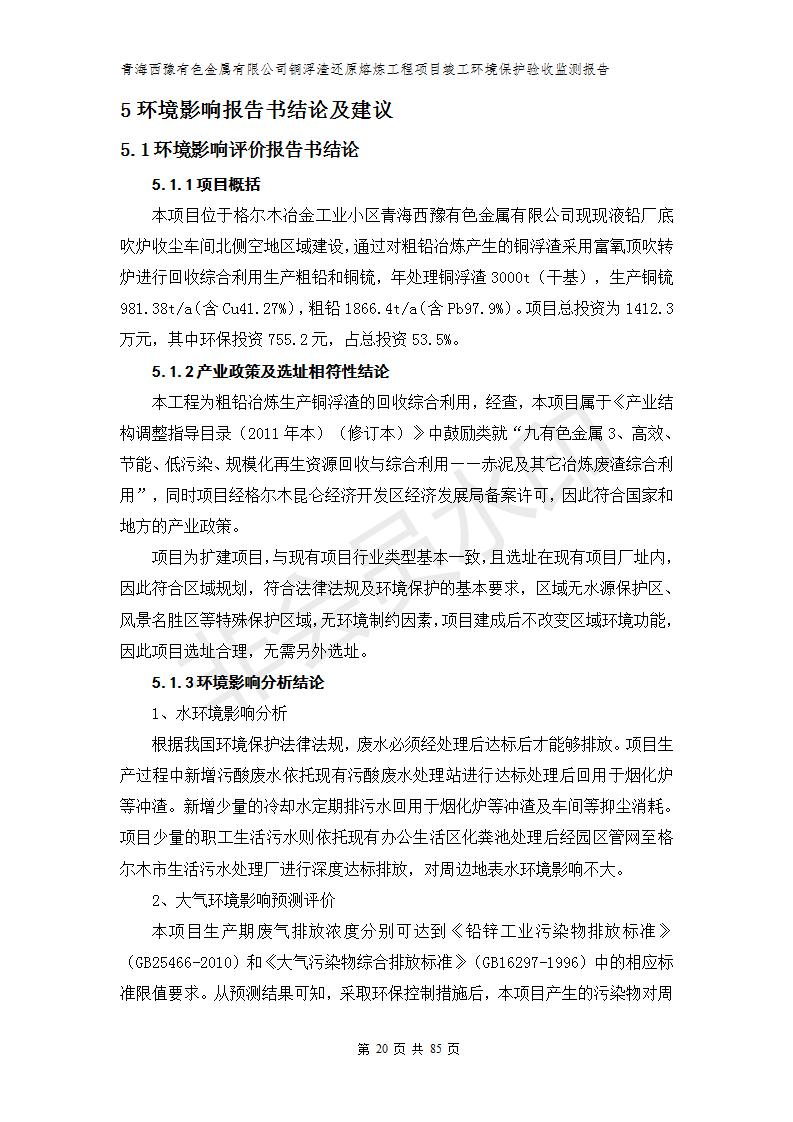 青海西豫有色金屬有限公司銅浮渣還原熔煉工程項(xiàng)目竣工環(huán)境保護(hù)驗(yàn)收監(jiān)測(cè)報(bào)告公示發(fā)布日期:(2018-11-23) 點(diǎn)擊次數(shù):2570 |