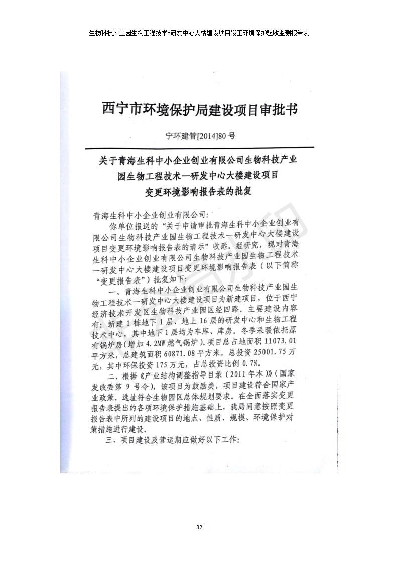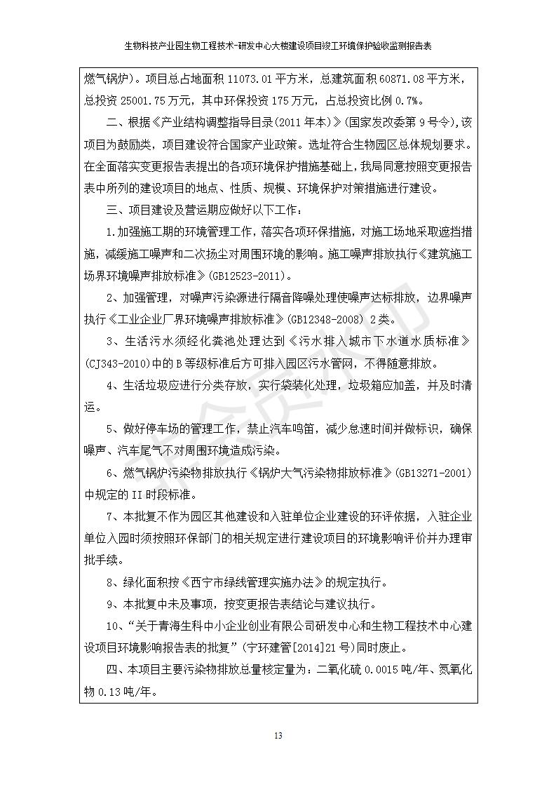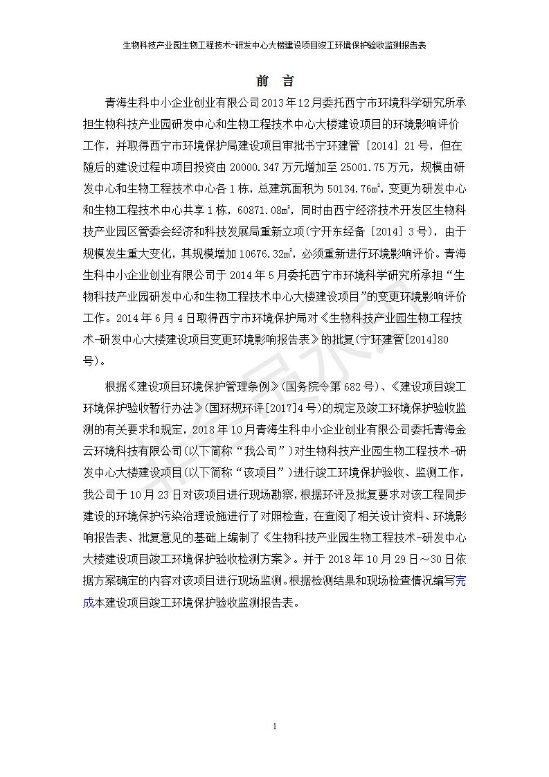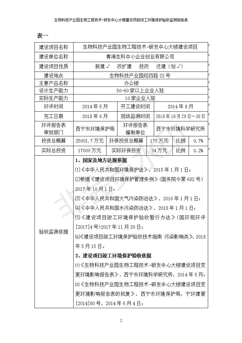 生物科技產(chǎn)業(yè)園生物工程技術(shù)-研發(fā)中心大樓建設(shè)項(xiàng)目竣工環(huán)境保護(hù)驗(yàn)收監(jiān)測(cè)報(bào)告表公示