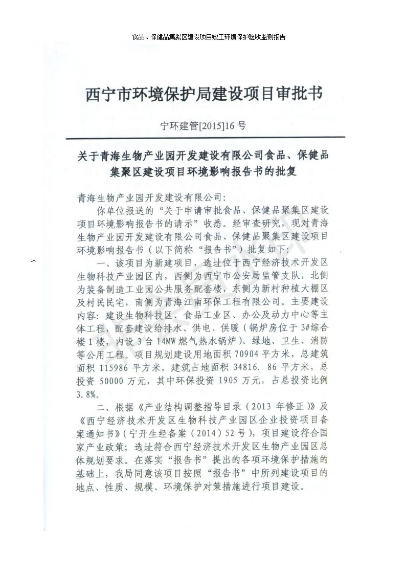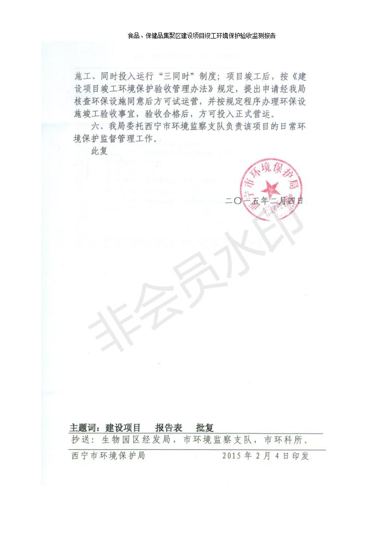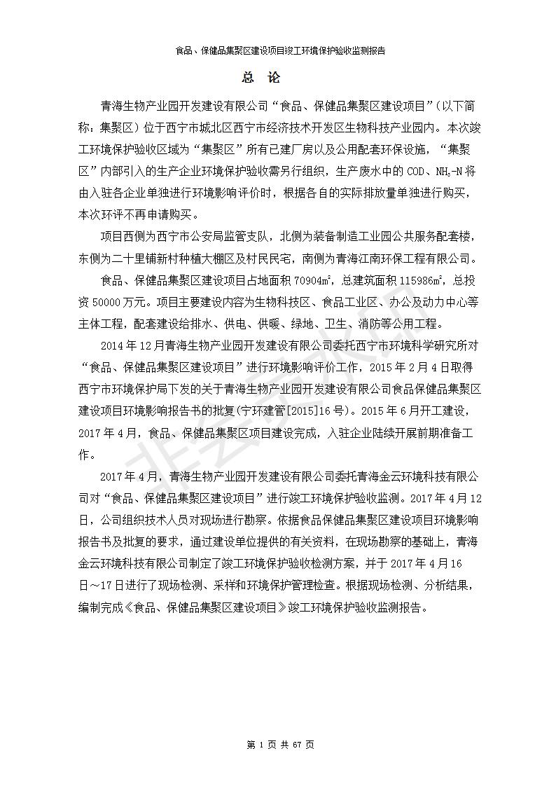 食品、保健品集聚區(qū)建設(shè)項(xiàng)目竣工環(huán)境保護(hù)驗(yàn)收監(jiān)測(cè)報(bào)告公示發(fā)布日期:(2019-3-11) 點(diǎn)擊次數(shù):2045 |