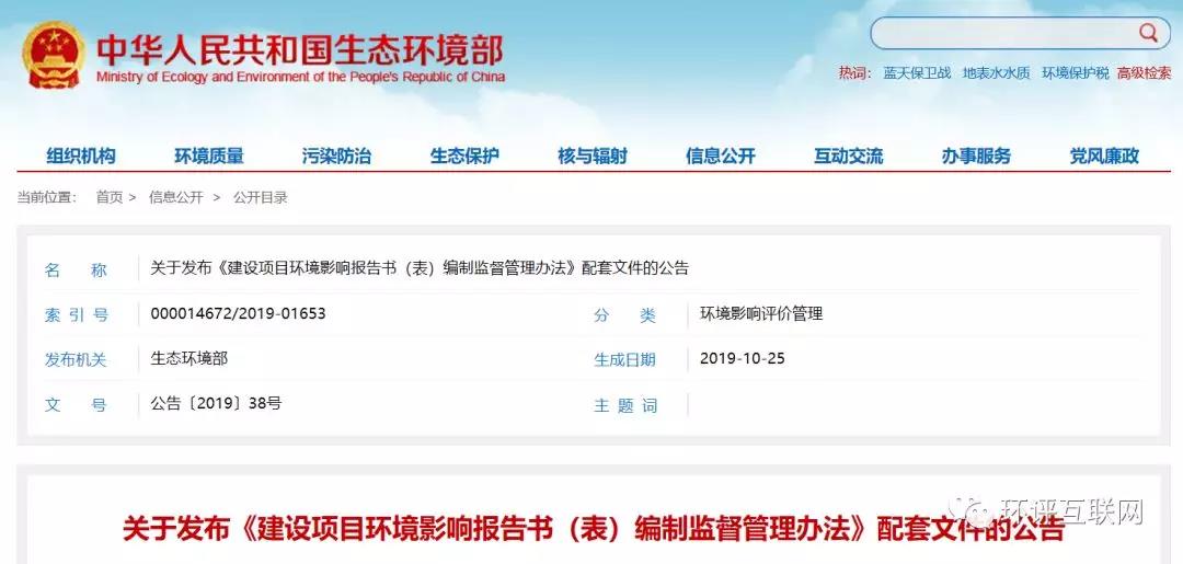環(huán)境部發(fā)布《建設項目環(huán)境影響報告書(表)編制監(jiān)督管理辦法》配套文件發(fā)布日期:(2019-10-28) 點擊次數(shù):2354 |