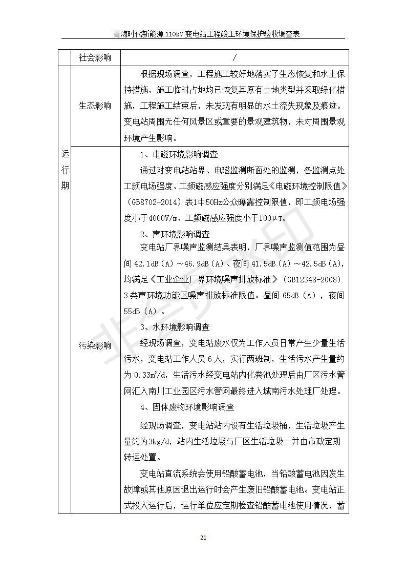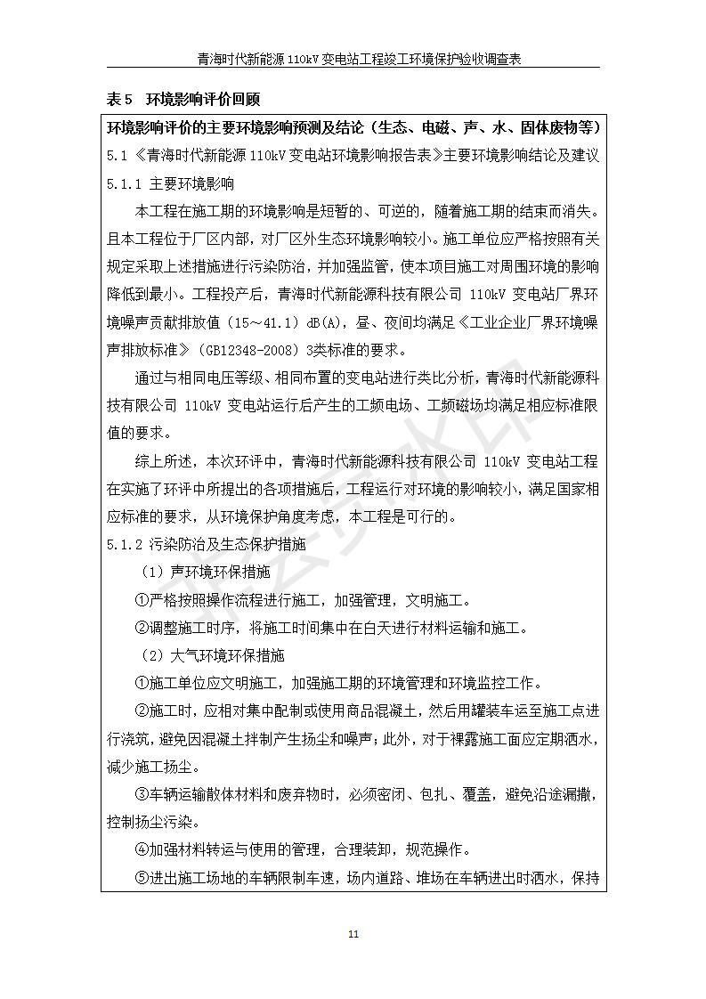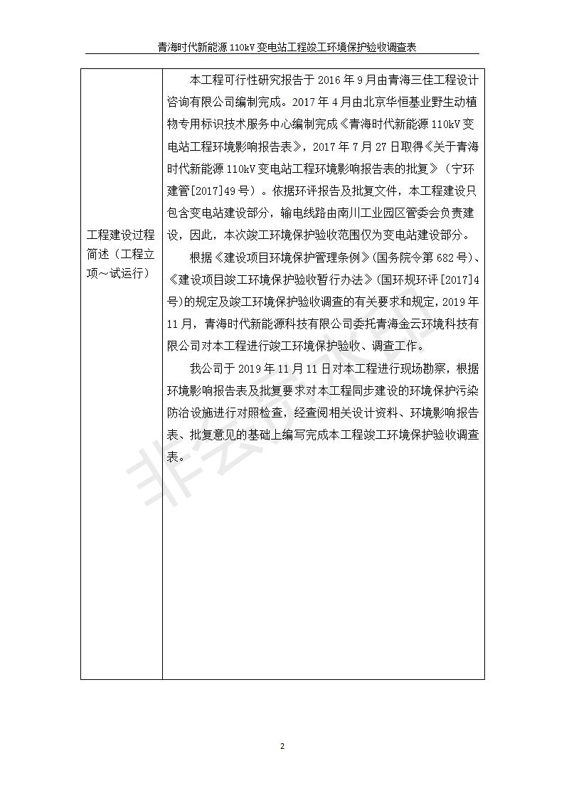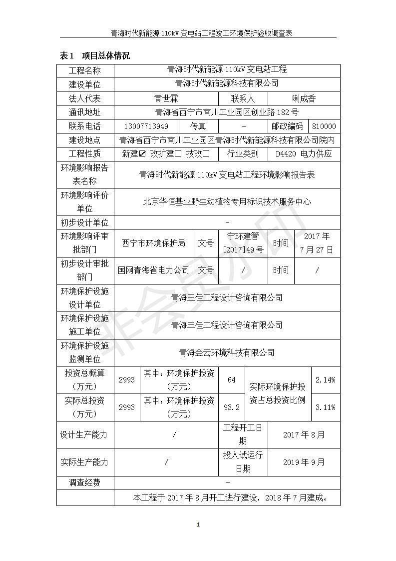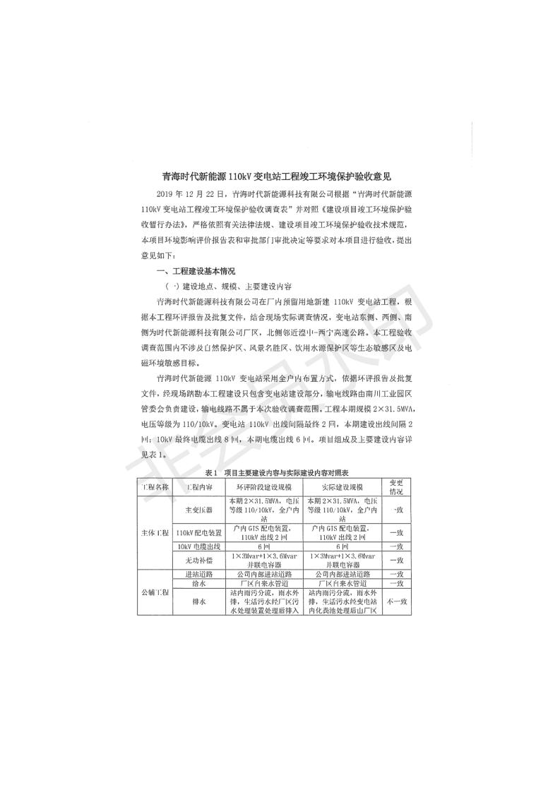 青海時代新能源110kV變電站工程竣工環(huán)境保護驗收調(diào)查表公示發(fā)布日期:(2020-1-14) 點擊次數(shù):2649 |