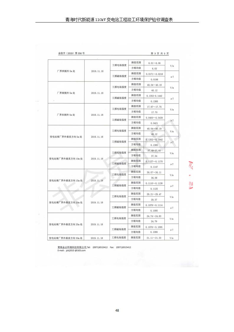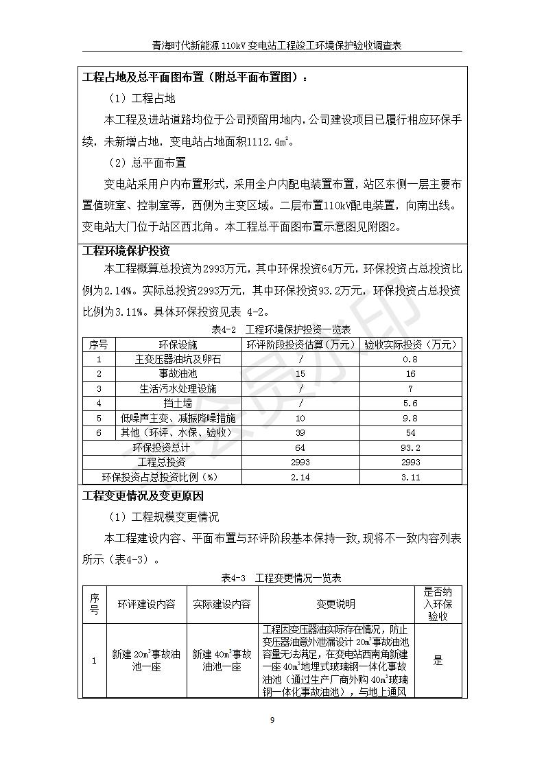 根據(jù)中華人民共和國國務(wù)院令第682號《國務(wù)院關(guān)于修改〈建設(shè)項目環(huán)境保護管理條例〉的決定》和《建設(shè)項目竣工環(huán)境保護驗收暫行辦法》(國務(wù)院令682號),青海時代新能源110kV變電站工程(包括竣工環(huán)境保護驗收調(diào)查表和驗收意見)公示如下。 一、項目名稱:青海時代新能源110kV變電站工程 二、地點:青海省西寧市南川工業(yè)園區(qū)創(chuàng)業(yè)路182號青海時代新能源科技有限公司廠區(qū)內(nèi) 三、建設(shè)單位:青海時代新能源科技有限公司 四、建設(shè)內(nèi)容:青海時代新能源 110kV 變電站采用全戶內(nèi)布置方式,依據(jù)環(huán)評報告及批復(fù)文件,經(jīng)現(xiàn)場踏勘本工程建設(shè)只包含變電站建設(shè)部分,輸電線路由南川工業(yè)園區(qū)管委會負(fù)責(zé)建設(shè),輸電線路不屬于本次驗收調(diào)查范圍。工程本期規(guī)模2×31.5MVA,電壓等級為110/10kV。變電站 110kV 出線間隔最終2回,本期建設(shè)出線間隔2回;10kV最終電纜出線8回,本期電纜出線6回。 五、聯(lián)系人:張工 六、聯(lián)系電話:0971-6515411 七、公示時間:二〇二〇年一月十四日至二〇二〇年二月十三日 公示期間,對上述公示內(nèi)容如有異議,請以書面形式反饋,個人須署真實姓名,單位須加蓋公章。