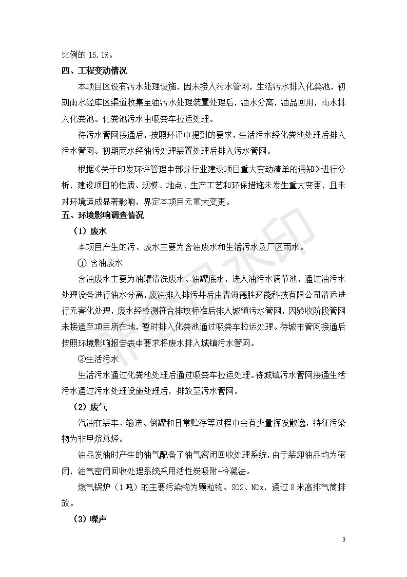 據(jù)中華人民共和國國務(wù)院令第682號《國務(wù)院關(guān)于修改〈建設(shè)項(xiàng)目環(huán)境保護(hù)管理?xiàng)l例〉的決定》和《建設(shè)項(xiàng)目竣工環(huán)境保護(hù)驗(yàn)收暫行辦法》(國務(wù)院令682號),中國石化青海石油分公司湟源油庫工程建設(shè)項(xiàng)目(包括竣工環(huán)境保護(hù)驗(yàn)收監(jiān)測報(bào)告表和驗(yàn)收意見)公示如下。 一、項(xiàng)目名稱:中國石化青海石油分公司湟源油庫工程建設(shè)項(xiàng)目 二、地點(diǎn):西寧市湟源縣申中鄉(xiāng)立達(dá)村尕莊臺 三、建設(shè)單位:中國石化銷售股份有限公司青海石油分公司 四、建設(shè)內(nèi)容:油品儲量6萬m3、其他配套設(shè)施。五、聯(lián)系人:董恒棟 六、聯(lián)系電話:18697130811 七、公示時(shí)間:二〇二〇年三月十三日至二〇二〇年四月十日 公示期間,對上述公示內(nèi)容如有異議,請以書面形式反饋,個(gè)人須署真實(shí)姓名,單位須加蓋公章。