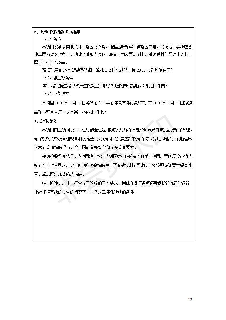 湟源油庫工程竣工環(huán)境保護(hù)驗(yàn)收監(jiān)測報(bào)告表發(fā)布日期:(2020-3-13) 點(diǎn)擊次數(shù):2480 |