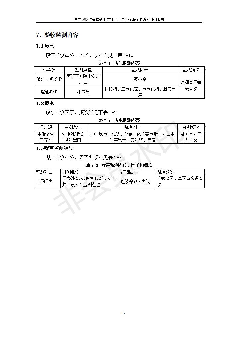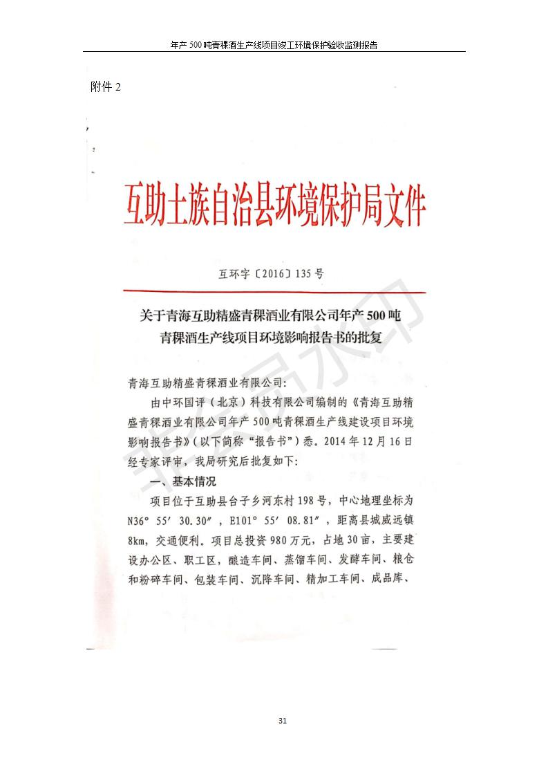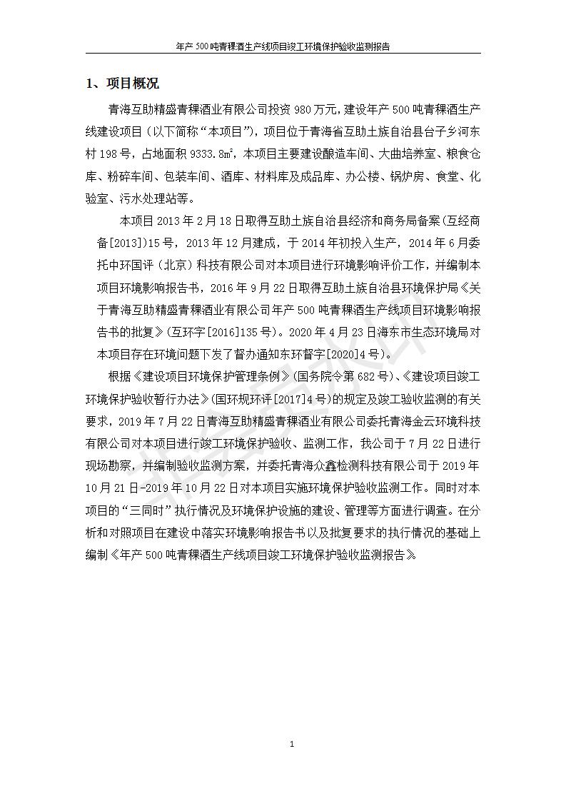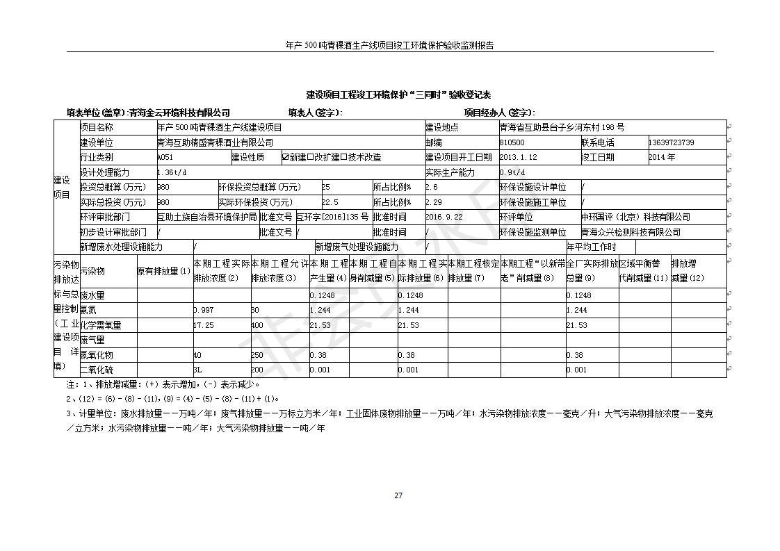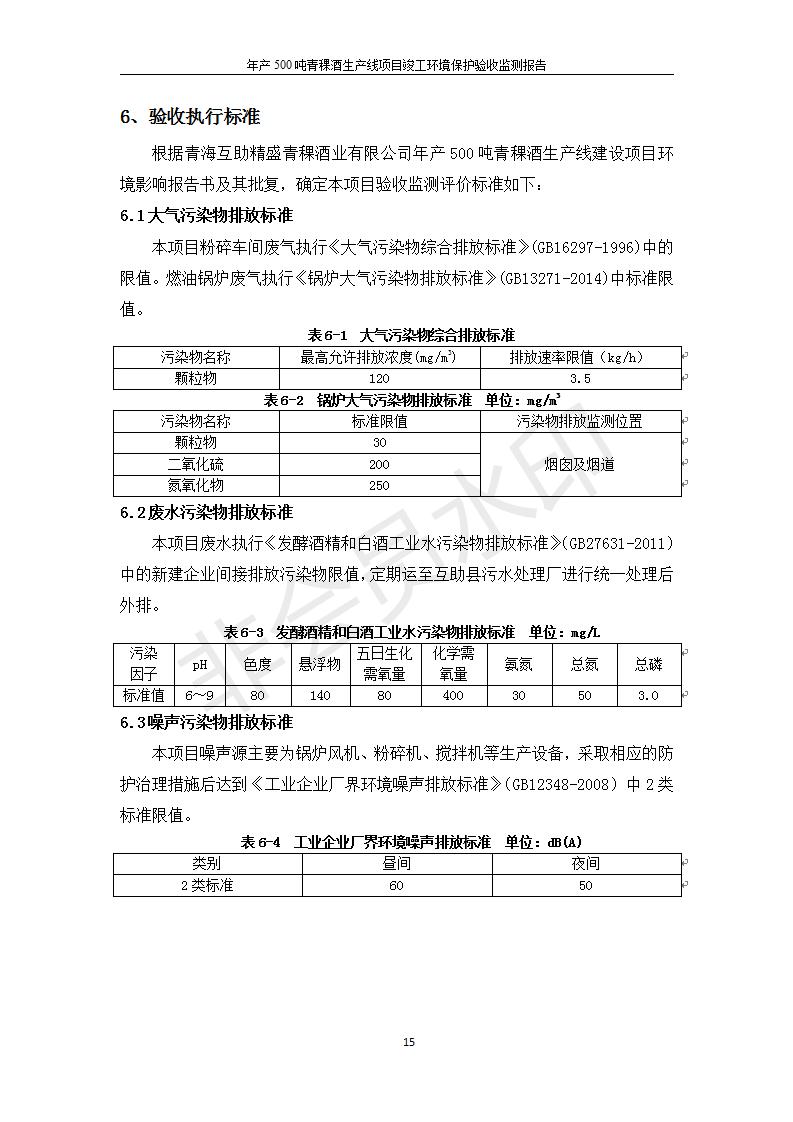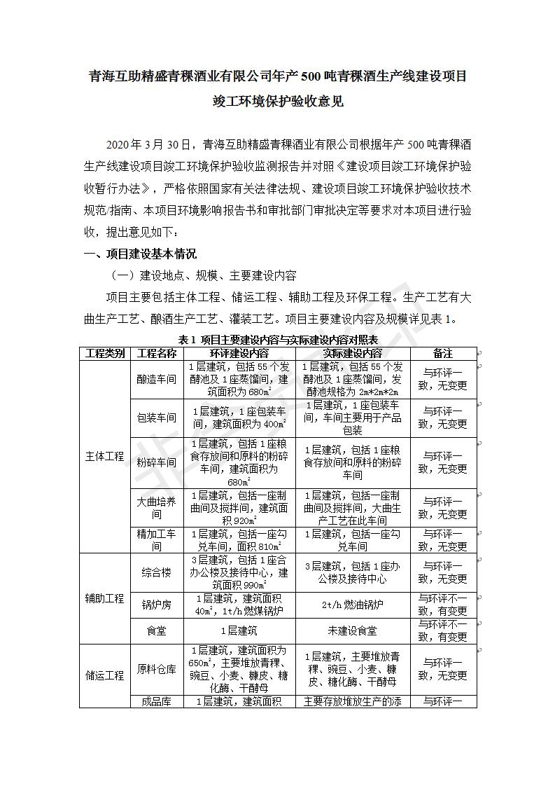 根據(jù)中華人民共和國國務(wù)院令第682號(hào)《國務(wù)院關(guān)于修改〈建設(shè)項(xiàng)目環(huán)境保護(hù)管理?xiàng)l例〉的決定》和《建設(shè)項(xiàng)目竣工環(huán)境保護(hù)驗(yàn)收暫行辦法》(國務(wù)院令682號(hào)),綜合檢測實(shí)驗(yàn)室建設(shè)項(xiàng)目(包括竣工環(huán)境保護(hù)驗(yàn)收監(jiān)測報(bào)告表和驗(yàn)收意見)公示如下。 一、項(xiàng)目名稱:青;ブ⑶囡茦I(yè)有限公司年產(chǎn)500噸青稞酒業(yè)生產(chǎn)線建設(shè)項(xiàng)目 二、地點(diǎn):青海省海東市互助土族自治縣臺(tái)子鄉(xiāng)河?xùn)|村198號(hào)