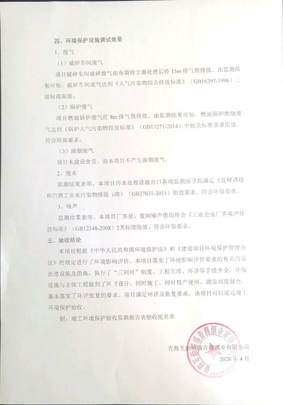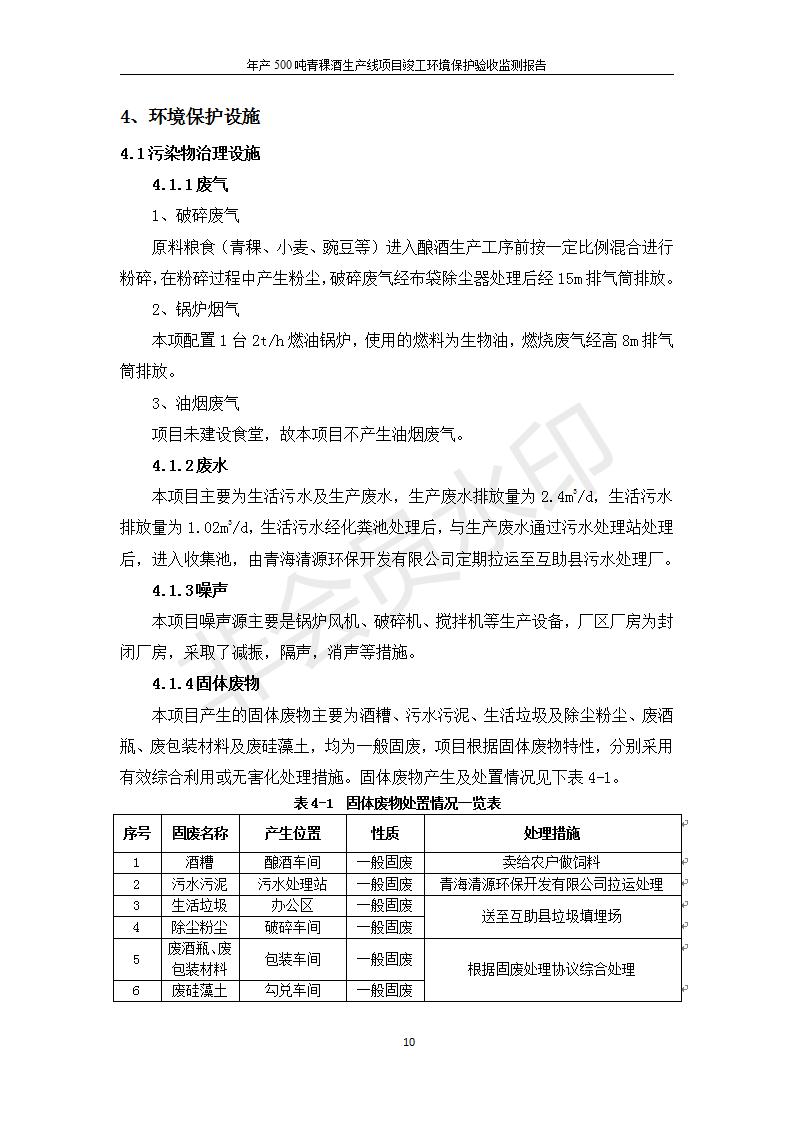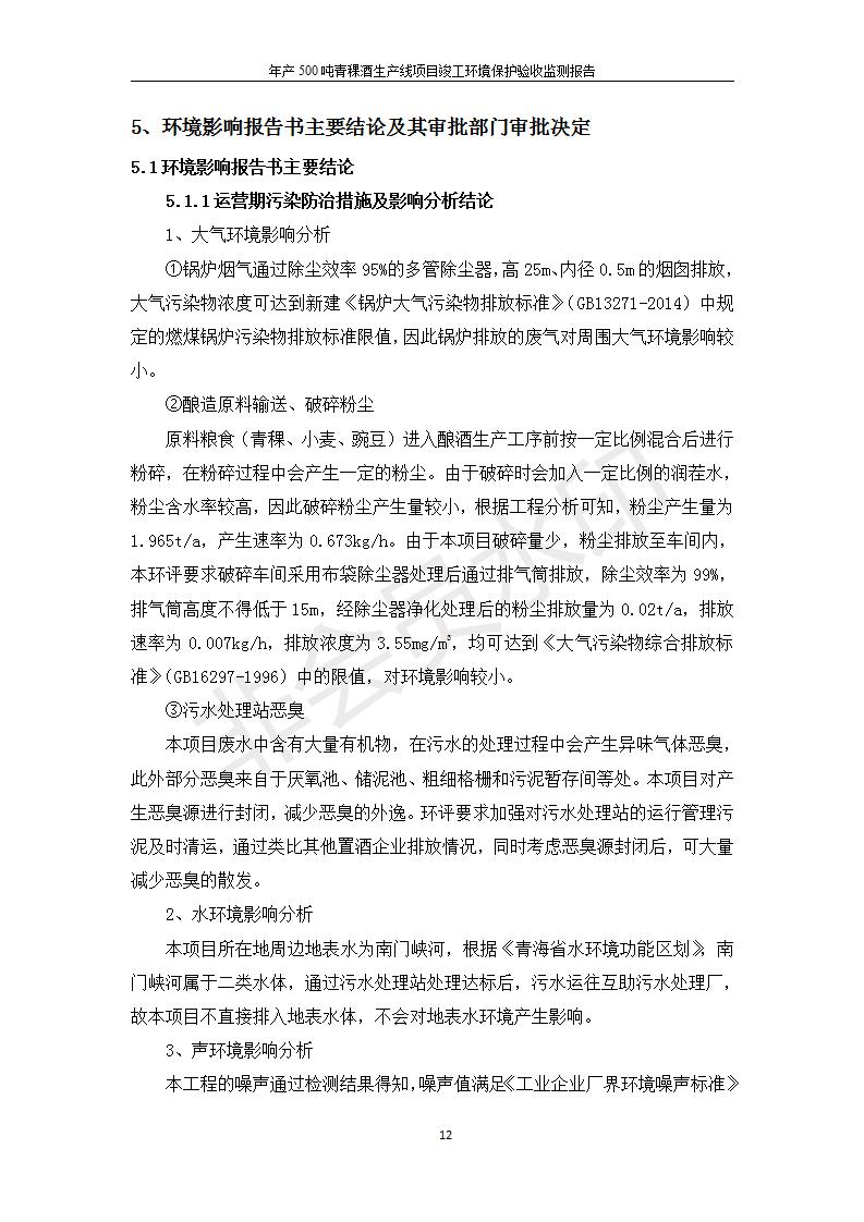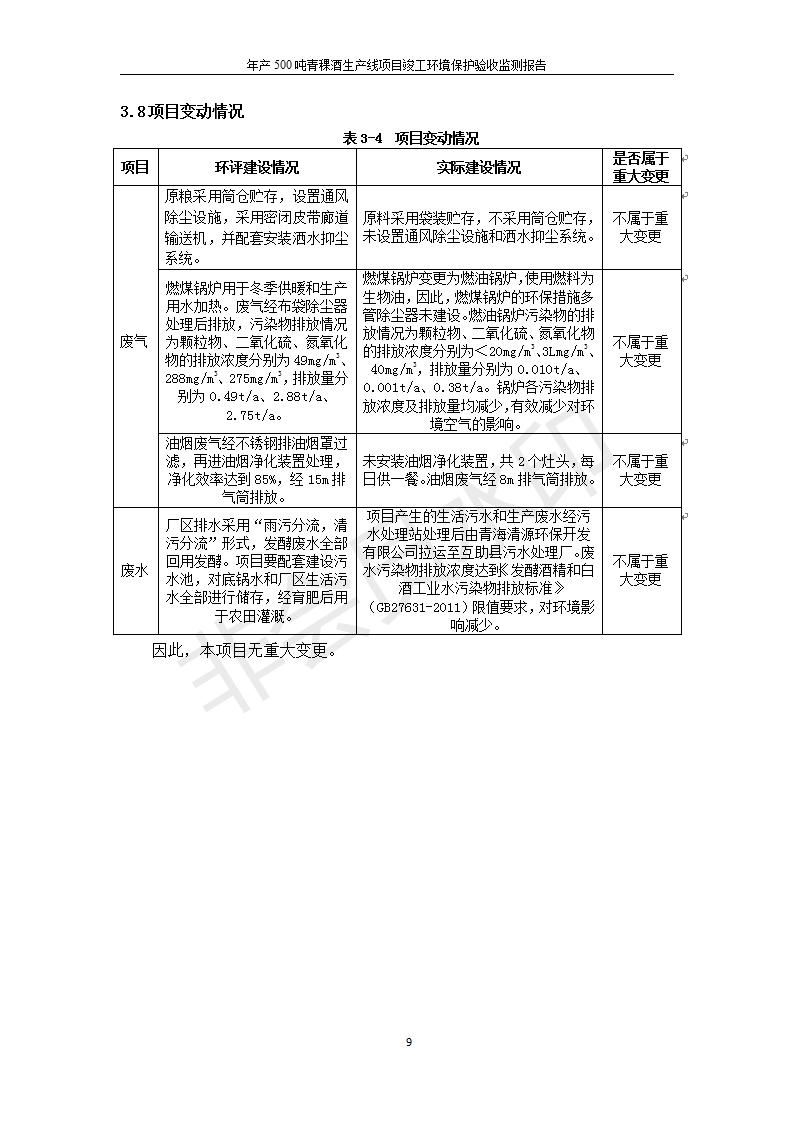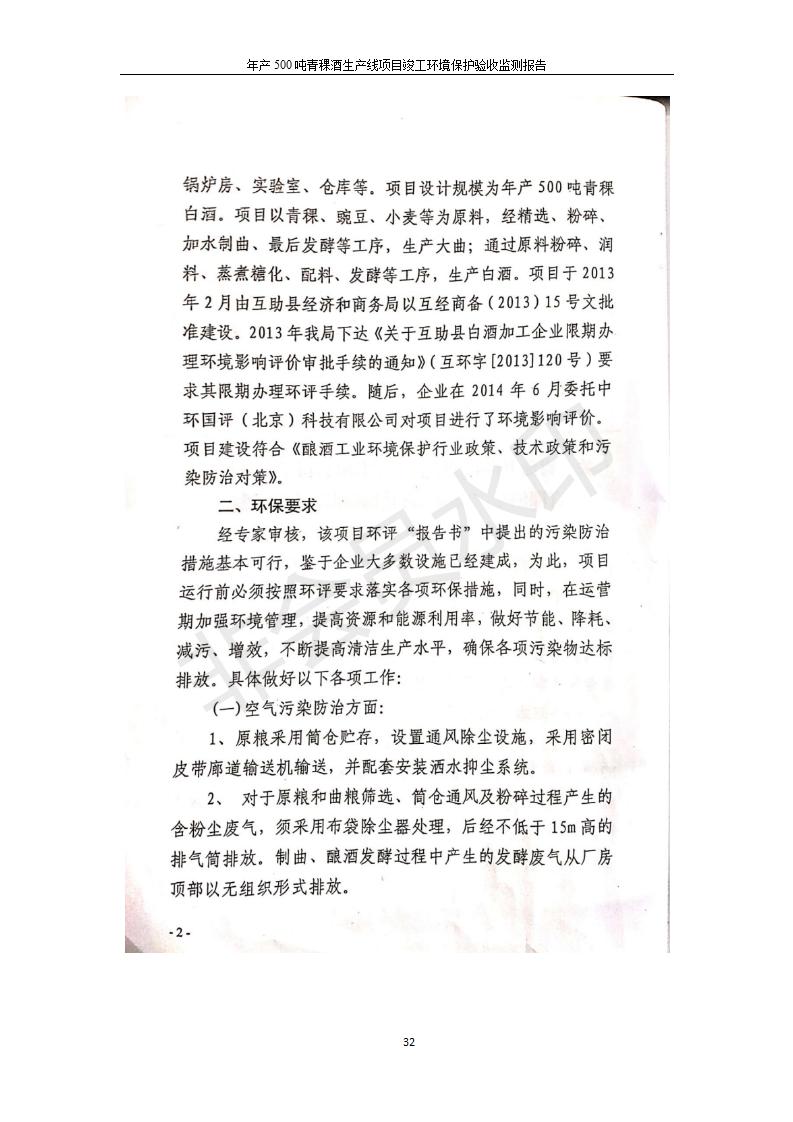 根據(jù)中華人民共和國國務(wù)院令第682號(hào)《國務(wù)院關(guān)于修改〈建設(shè)項(xiàng)目環(huán)境保護(hù)管理?xiàng)l例〉的決定》和《建設(shè)項(xiàng)目竣工環(huán)境保護(hù)驗(yàn)收暫行辦法》(國務(wù)院令682號(hào)),綜合檢測實(shí)驗(yàn)室建設(shè)項(xiàng)目(包括竣工環(huán)境保護(hù)驗(yàn)收監(jiān)測報(bào)告表和驗(yàn)收意見)公示如下。 一、項(xiàng)目名稱:青;ブ⑶囡茦I(yè)有限公司年產(chǎn)500噸青稞酒業(yè)生產(chǎn)線建設(shè)項(xiàng)目 二、地點(diǎn):青海省海東市互助土族自治縣臺(tái)子鄉(xiāng)河?xùn)|村198號(hào)