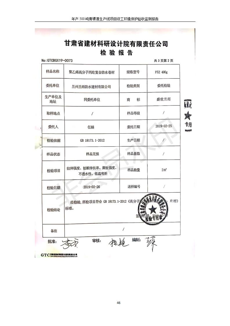 青;ブ⑶囡茦I(yè)有限公司年產(chǎn)500噸青稞酒業(yè)生產(chǎn)線建設(shè)項(xiàng)目竣工環(huán)境保護(hù)驗(yàn)收監(jiān)測報(bào)告表公示發(fā)布日期:(2020-4-27) 點(diǎn)擊次數(shù):2422 |
