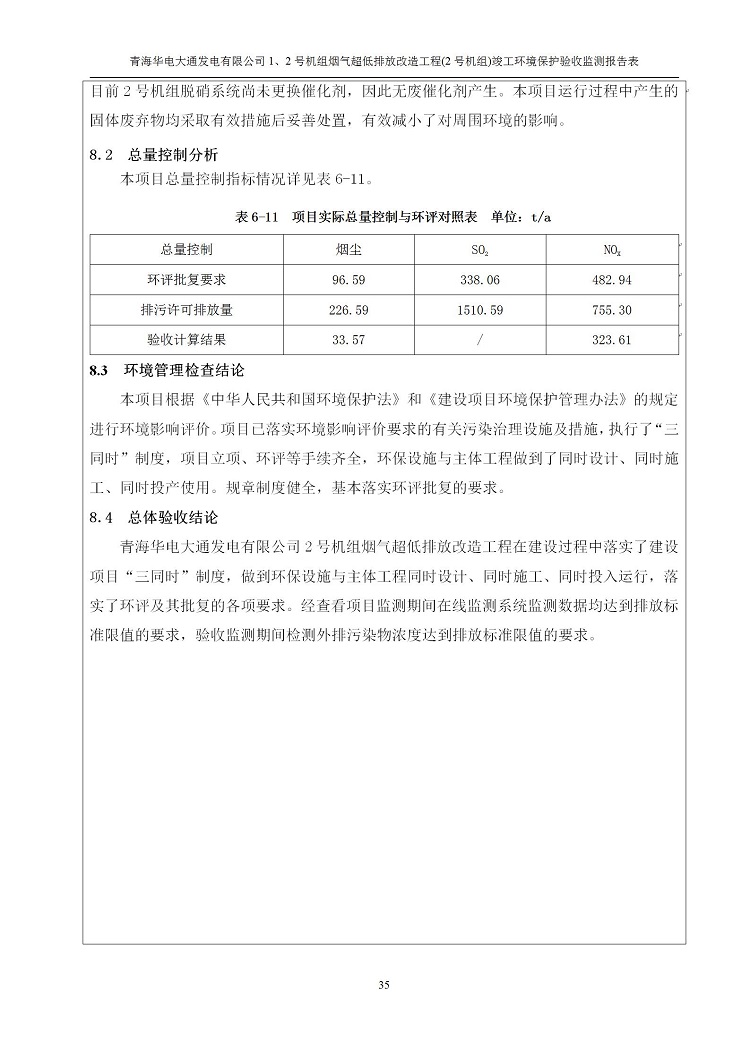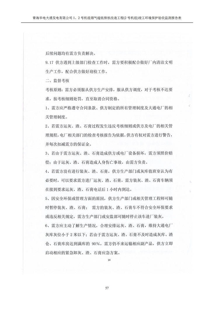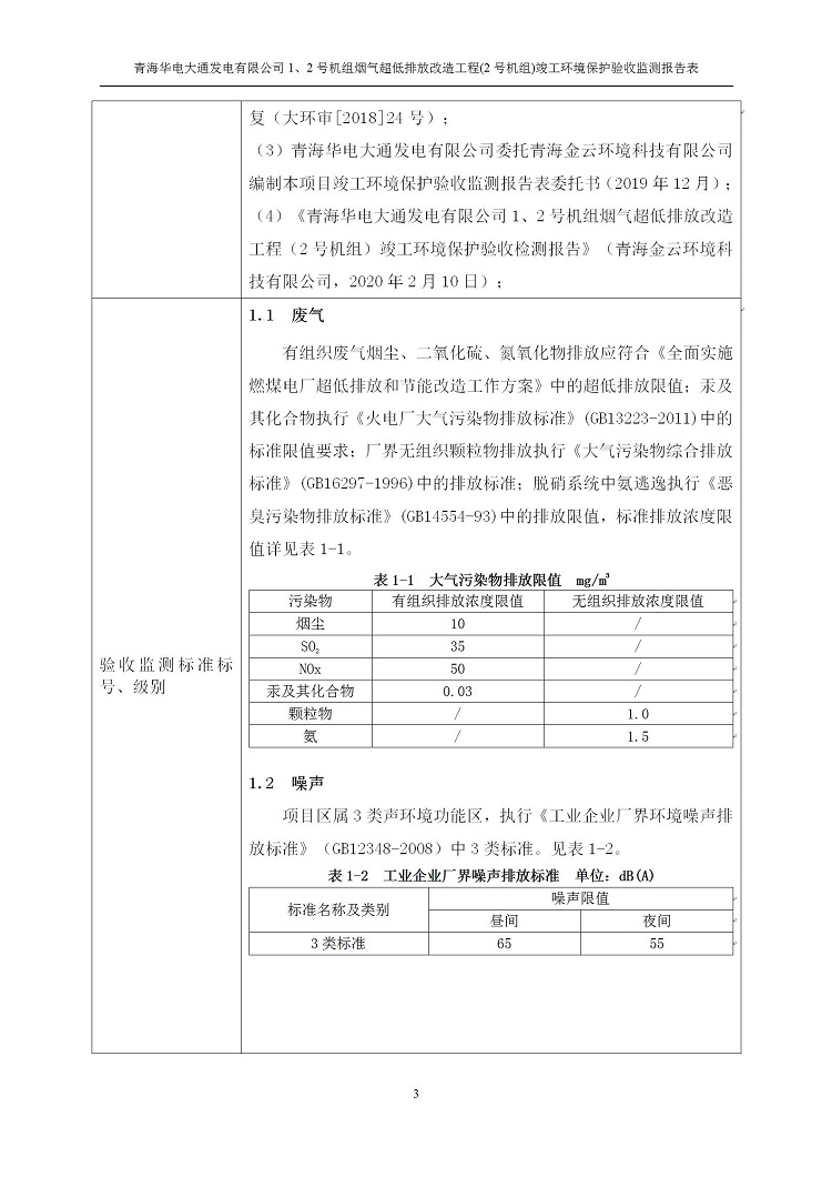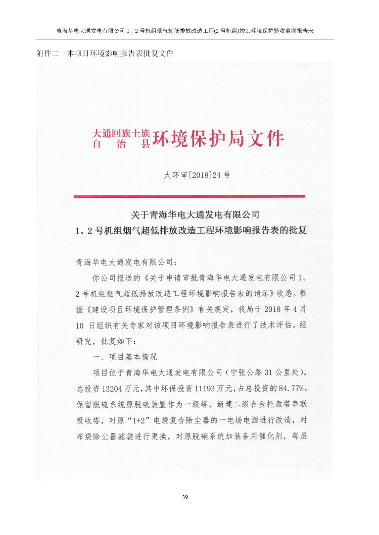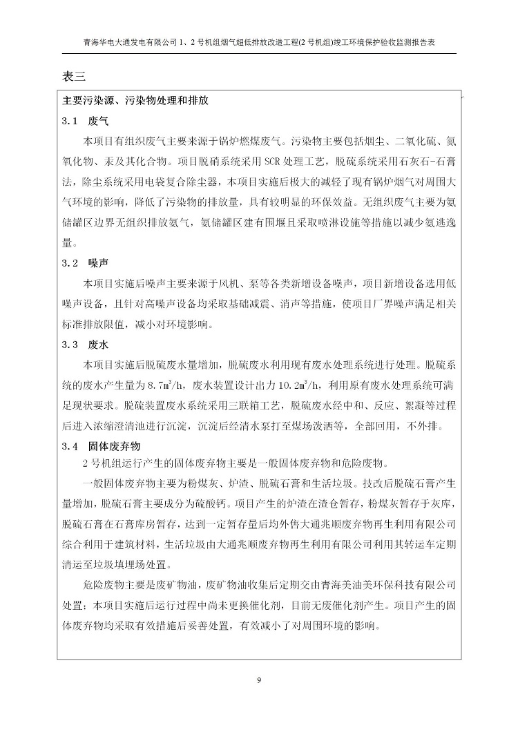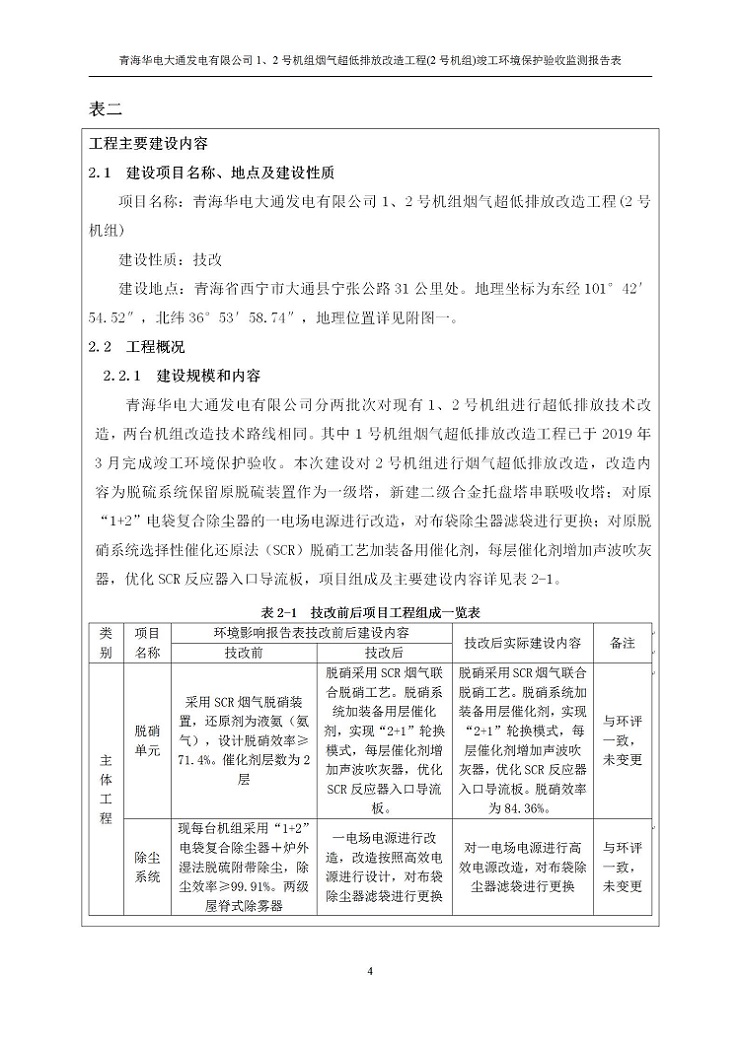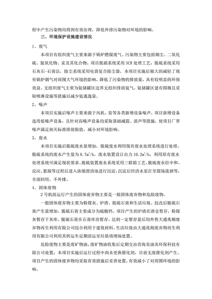 根據(jù)中華人民共和國(guó)國(guó)務(wù)院令第682號(hào)《國(guó)務(wù)院關(guān)于修改〈建設(shè)項(xiàng)目環(huán)境保護(hù)管理?xiàng)l例〉的決定》和《建設(shè)項(xiàng)目竣工環(huán)境保護(hù)驗(yàn)收暫行辦法》(國(guó)務(wù)院令682號(hào)),青海華電大通發(fā)電有限公司1、2號(hào)機(jī)組煙氣超低排放改造工程(2號(hào)機(jī)組) (包括竣工環(huán)境保護(hù)驗(yàn)收監(jiān)測(cè)報(bào)告表和驗(yàn)收意見(jiàn))公示如下。 一、項(xiàng)目名稱:青海華電大通發(fā)電有限公司1、2號(hào)機(jī)組煙氣超低排放改造工程(2號(hào)機(jī)組) 竣工環(huán)境保護(hù)驗(yàn)收監(jiān)測(cè)報(bào)告表 二、地點(diǎn):青海省西寧市大通縣寧張公路31公里處 三、建設(shè)單位:青海華電大通發(fā)電有限公司 四、建設(shè)內(nèi)容:2號(hào)機(jī)組煙氣超低排放改造,2號(hào)機(jī)組改造內(nèi)容為脫硫系統(tǒng)保留原脫硫裝置作為一級(jí)塔,新建二級(jí)合金托盤(pán)塔串聯(lián)吸收塔;對(duì)原“1+2”電袋復(fù)合除塵器的一電場(chǎng)電源進(jìn)行改造,對(duì)布袋除塵器濾袋進(jìn)行更換;對(duì)原脫硝系統(tǒng)選擇性催化還原法(SCR)脫硝工藝加裝備用催化劑,每層催化劑增加聲波吹灰器,優(yōu)化SCR反應(yīng)器入口導(dǎo)流板。 五、聯(lián)系人:馬世敏 六、聯(lián)系電 話:0971-6515411 七、公示時(shí)間:二〇二〇年四月二十九日至二〇二〇年五月二十八日 公示期間,對(duì)上述公示內(nèi)容如有異議,請(qǐng)以書(shū)面形式反饋,個(gè)人須署真實(shí)姓名,單位須加蓋公章。