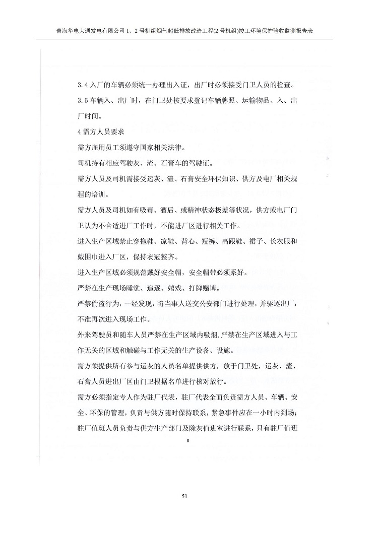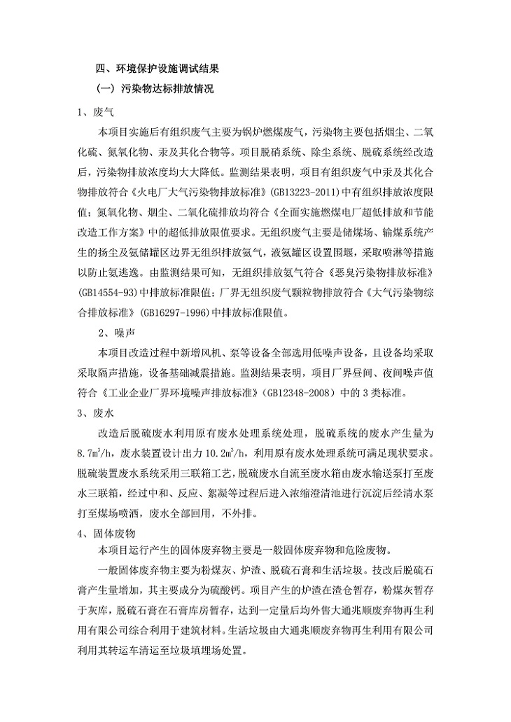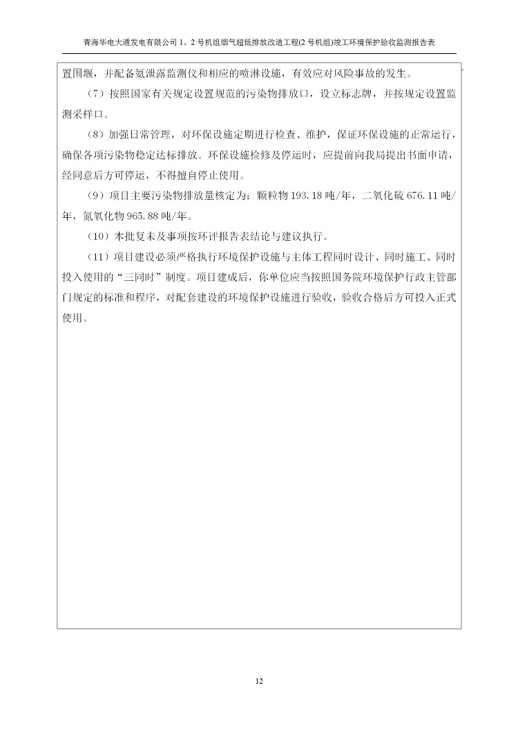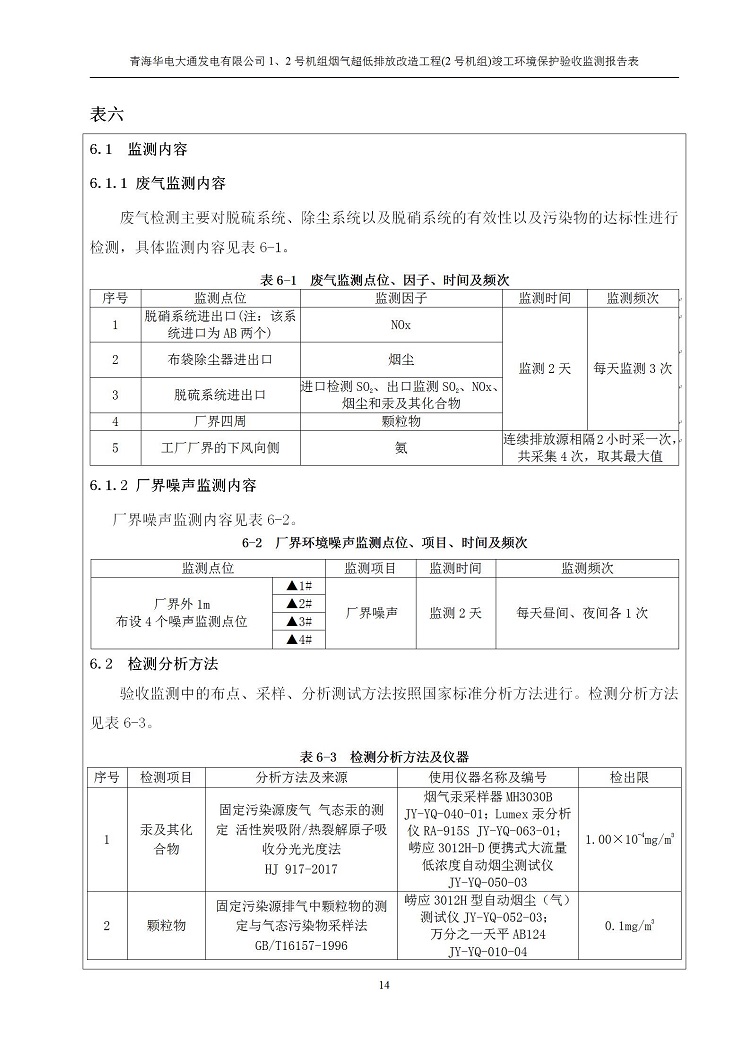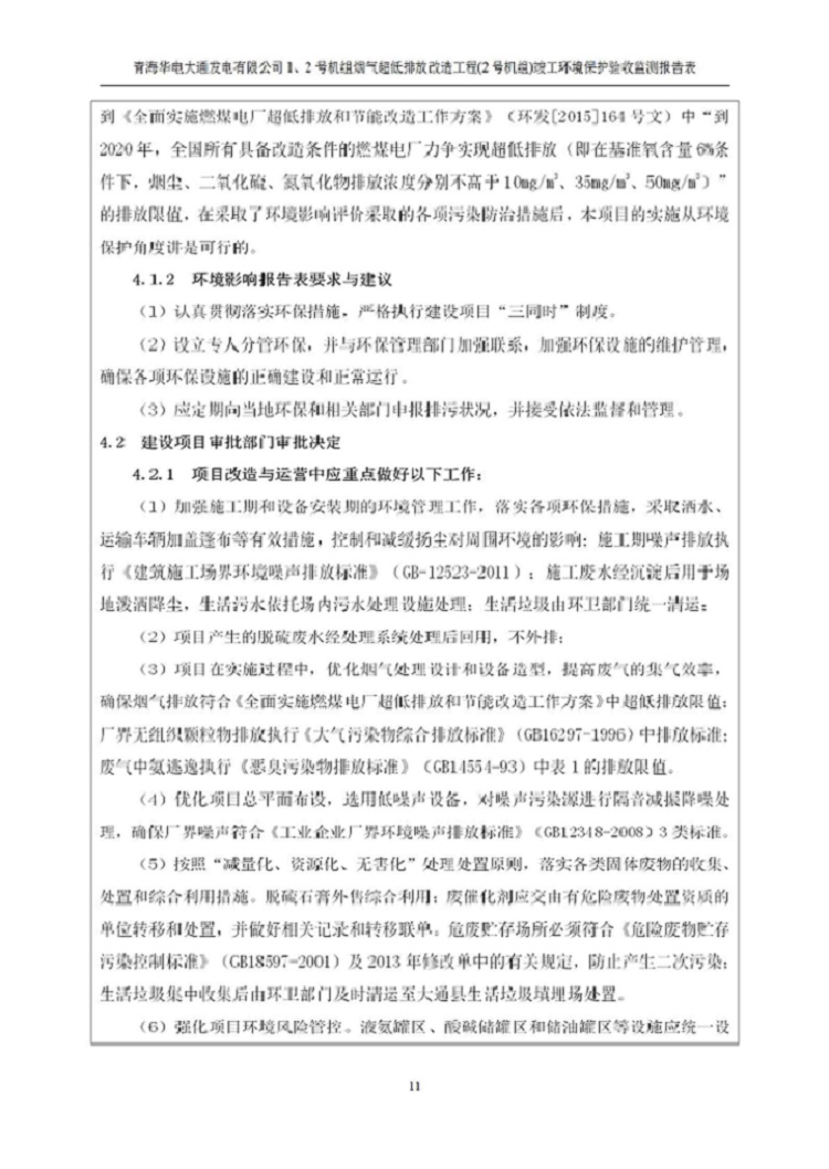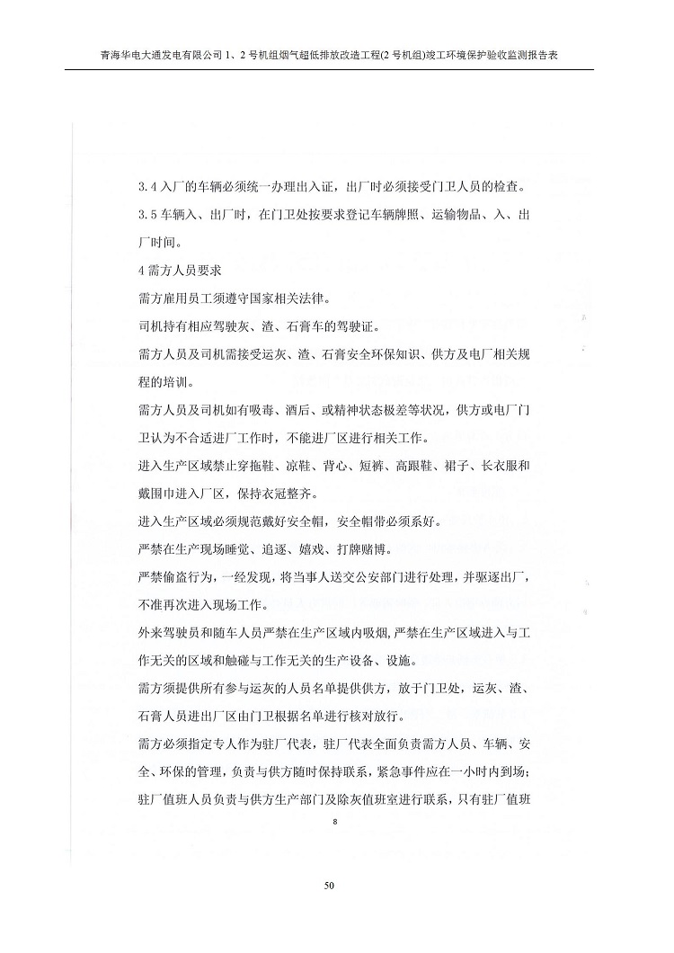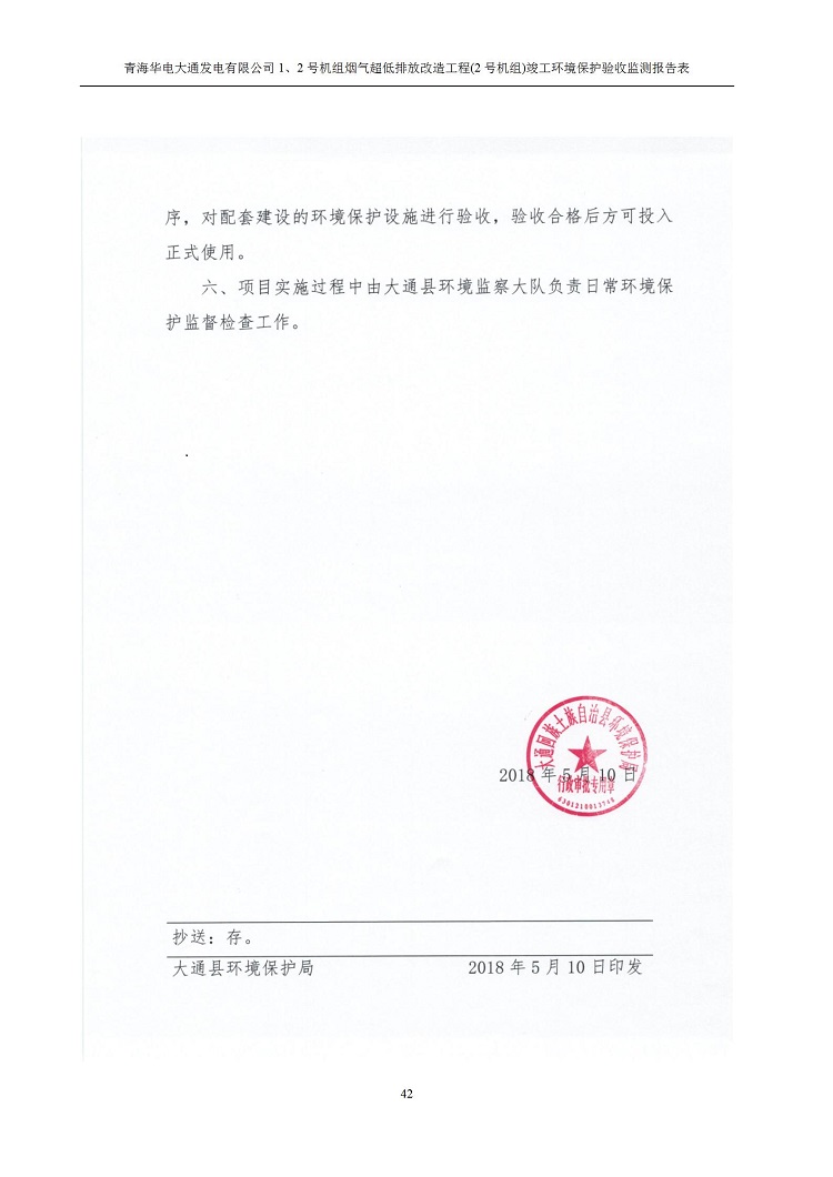 根據(jù)中華人民共和國(guó)國(guó)務(wù)院令第682號(hào)《國(guó)務(wù)院關(guān)于修改〈建設(shè)項(xiàng)目環(huán)境保護(hù)管理?xiàng)l例〉的決定》和《建設(shè)項(xiàng)目竣工環(huán)境保護(hù)驗(yàn)收暫行辦法》(國(guó)務(wù)院令682號(hào)),青海華電大通發(fā)電有限公司1、2號(hào)機(jī)組煙氣超低排放改造工程(2號(hào)機(jī)組) (包括竣工環(huán)境保護(hù)驗(yàn)收監(jiān)測(cè)報(bào)告表和驗(yàn)收意見(jiàn))公示如下。 一、項(xiàng)目名稱:青海華電大通發(fā)電有限公司1、2號(hào)機(jī)組煙氣超低排放改造工程(2號(hào)機(jī)組) 竣工環(huán)境保護(hù)驗(yàn)收監(jiān)測(cè)報(bào)告表 二、地點(diǎn):青海省西寧市大通縣寧張公路31公里處 三、建設(shè)單位:青海華電大通發(fā)電有限公司 四、建設(shè)內(nèi)容:2號(hào)機(jī)組煙氣超低排放改造,2號(hào)機(jī)組改造內(nèi)容為脫硫系統(tǒng)保留原脫硫裝置作為一級(jí)塔,新建二級(jí)合金托盤(pán)塔串聯(lián)吸收塔;對(duì)原“1+2”電袋復(fù)合除塵器的一電場(chǎng)電源進(jìn)行改造,對(duì)布袋除塵器濾袋進(jìn)行更換;對(duì)原脫硝系統(tǒng)選擇性催化還原法(SCR)脫硝工藝加裝備用催化劑,每層催化劑增加聲波吹灰器,優(yōu)化SCR反應(yīng)器入口導(dǎo)流板。 五、聯(lián)系人:馬世敏 六、聯(lián)系電 話:0971-6515411 七、公示時(shí)間:二〇二〇年四月二十九日至二〇二〇年五月二十八日 公示期間,對(duì)上述公示內(nèi)容如有異議,請(qǐng)以書(shū)面形式反饋,個(gè)人須署真實(shí)姓名,單位須加蓋公章。