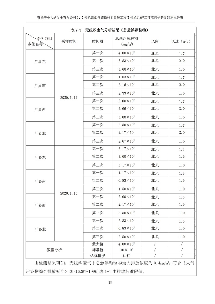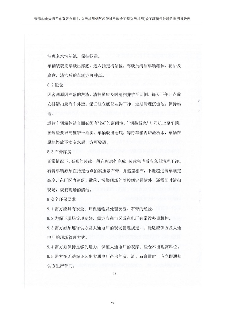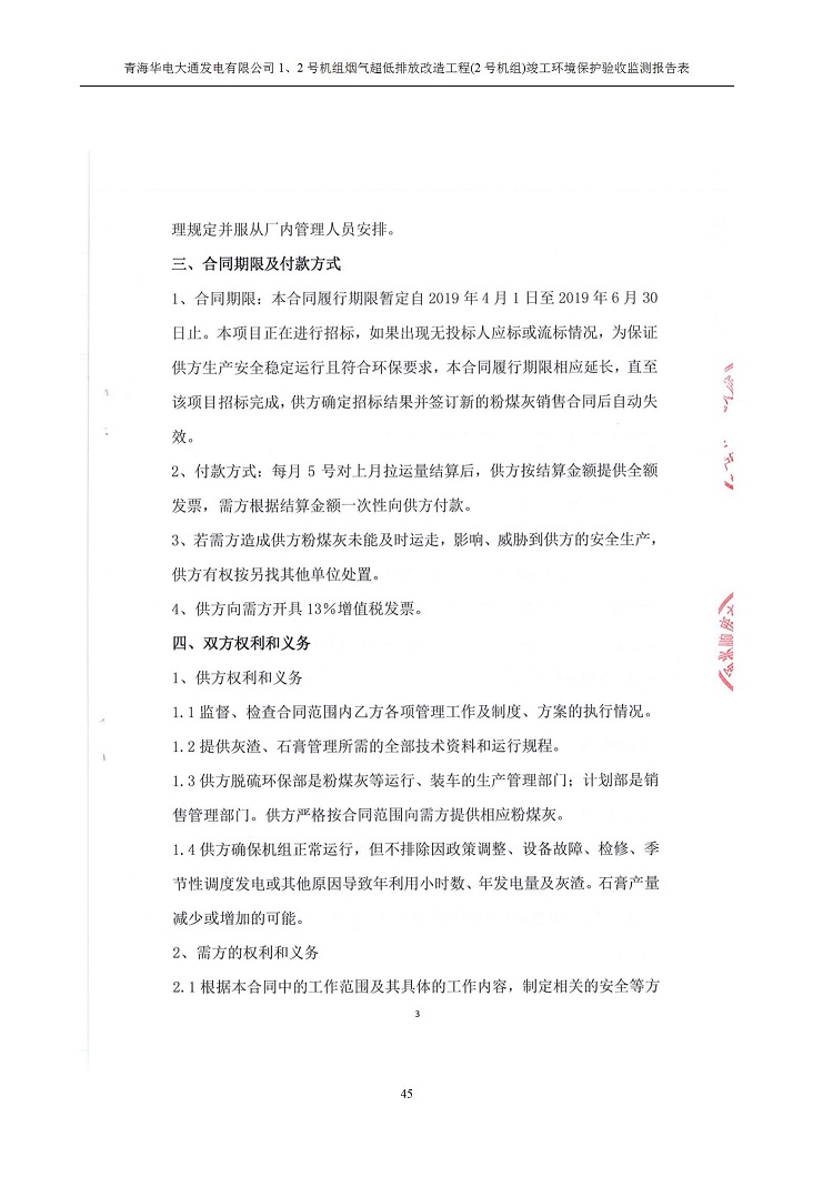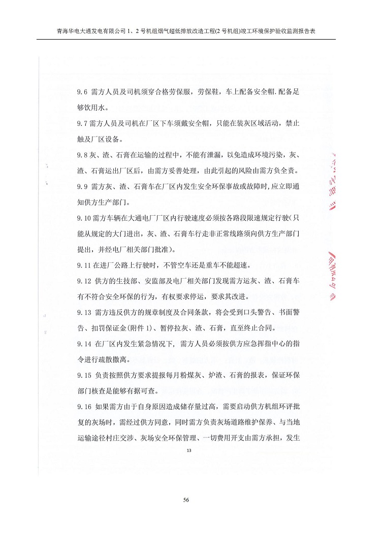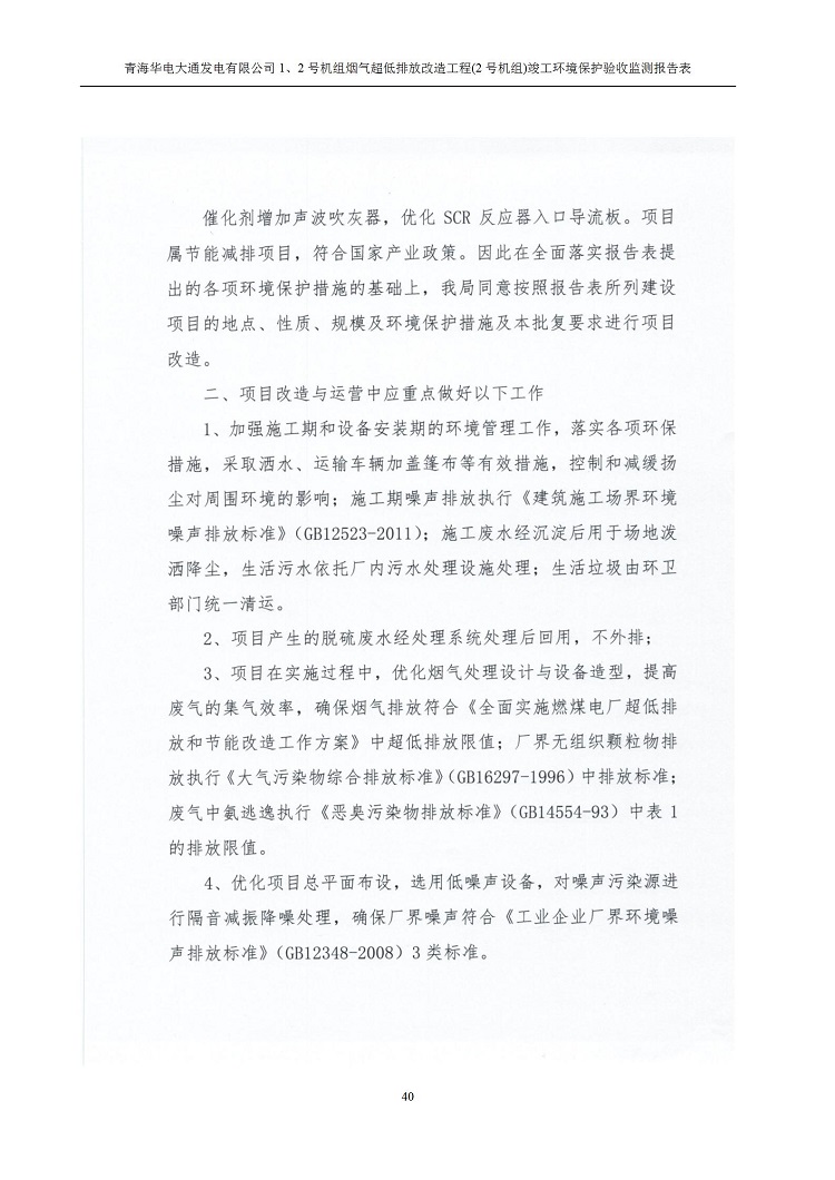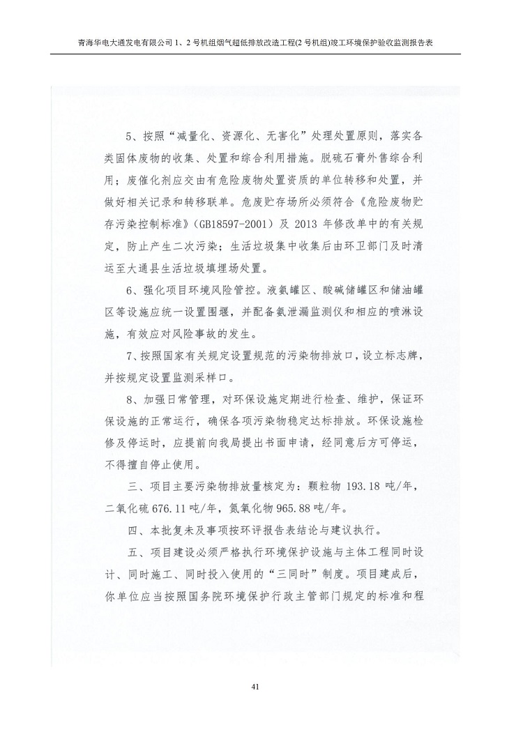 根據(jù)中華人民共和國(guó)國(guó)務(wù)院令第682號(hào)《國(guó)務(wù)院關(guān)于修改〈建設(shè)項(xiàng)目環(huán)境保護(hù)管理?xiàng)l例〉的決定》和《建設(shè)項(xiàng)目竣工環(huán)境保護(hù)驗(yàn)收暫行辦法》(國(guó)務(wù)院令682號(hào)),青海華電大通發(fā)電有限公司1、2號(hào)機(jī)組煙氣超低排放改造工程(2號(hào)機(jī)組) (包括竣工環(huán)境保護(hù)驗(yàn)收監(jiān)測(cè)報(bào)告表和驗(yàn)收意見(jiàn))公示如下。 一、項(xiàng)目名稱:青海華電大通發(fā)電有限公司1、2號(hào)機(jī)組煙氣超低排放改造工程(2號(hào)機(jī)組) 竣工環(huán)境保護(hù)驗(yàn)收監(jiān)測(cè)報(bào)告表 二、地點(diǎn):青海省西寧市大通縣寧張公路31公里處 三、建設(shè)單位:青海華電大通發(fā)電有限公司 四、建設(shè)內(nèi)容:2號(hào)機(jī)組煙氣超低排放改造,2號(hào)機(jī)組改造內(nèi)容為脫硫系統(tǒng)保留原脫硫裝置作為一級(jí)塔,新建二級(jí)合金托盤(pán)塔串聯(lián)吸收塔;對(duì)原“1+2”電袋復(fù)合除塵器的一電場(chǎng)電源進(jìn)行改造,對(duì)布袋除塵器濾袋進(jìn)行更換;對(duì)原脫硝系統(tǒng)選擇性催化還原法(SCR)脫硝工藝加裝備用催化劑,每層催化劑增加聲波吹灰器,優(yōu)化SCR反應(yīng)器入口導(dǎo)流板。 五、聯(lián)系人:馬世敏 六、聯(lián)系電 話:0971-6515411 七、公示時(shí)間:二〇二〇年四月二十九日至二〇二〇年五月二十八日 公示期間,對(duì)上述公示內(nèi)容如有異議,請(qǐng)以書(shū)面形式反饋,個(gè)人須署真實(shí)姓名,單位須加蓋公章。
