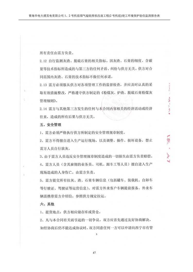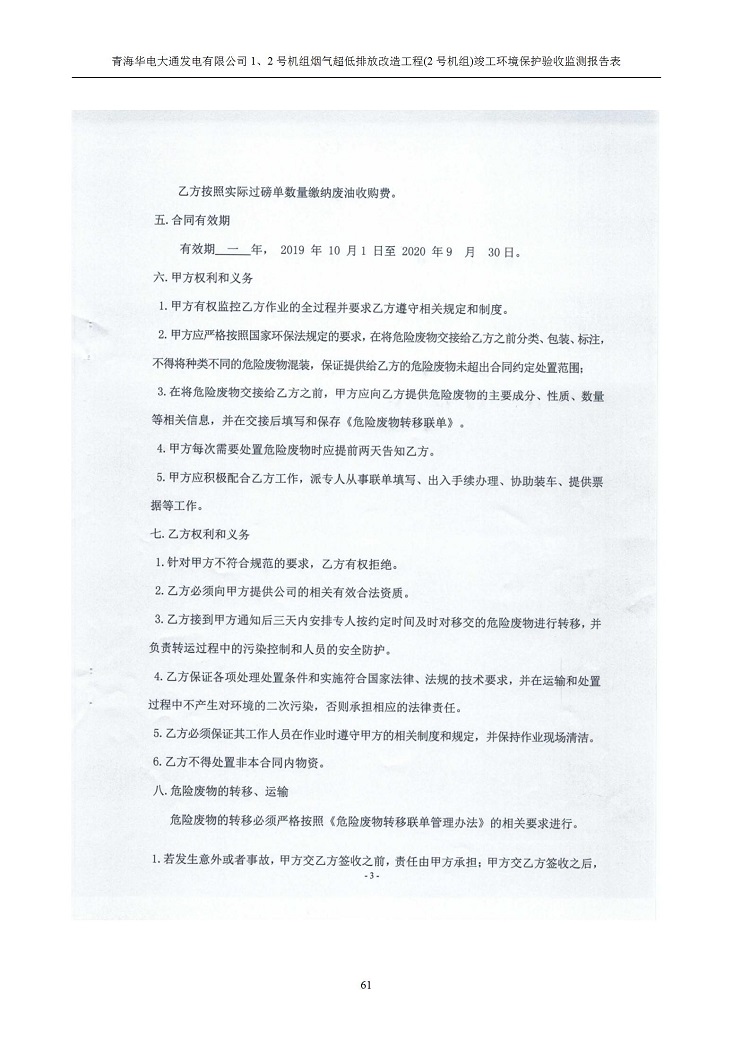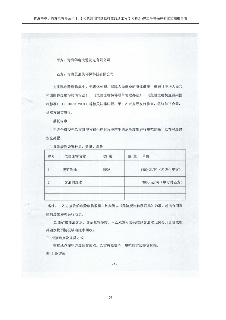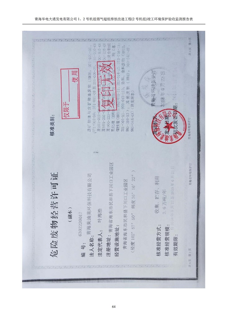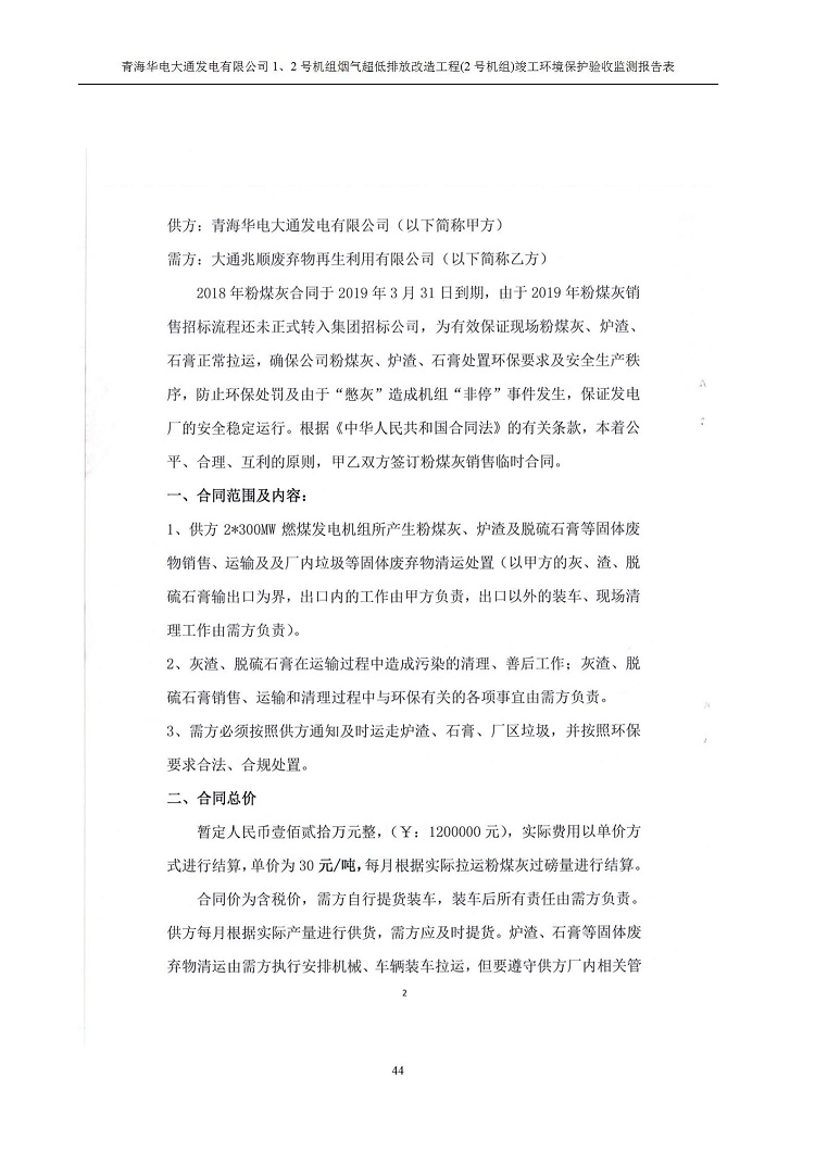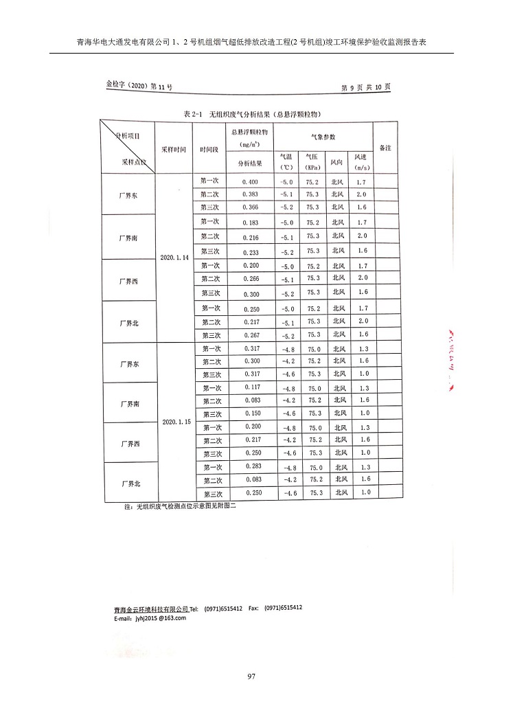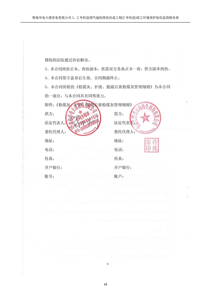 根據(jù)中華人民共和國(guó)國(guó)務(wù)院令第682號(hào)《國(guó)務(wù)院關(guān)于修改〈建設(shè)項(xiàng)目環(huán)境保護(hù)管理?xiàng)l例〉的決定》和《建設(shè)項(xiàng)目竣工環(huán)境保護(hù)驗(yàn)收暫行辦法》(國(guó)務(wù)院令682號(hào)),青海華電大通發(fā)電有限公司1、2號(hào)機(jī)組煙氣超低排放改造工程(2號(hào)機(jī)組) (包括竣工環(huán)境保護(hù)驗(yàn)收監(jiān)測(cè)報(bào)告表和驗(yàn)收意見(jiàn))公示如下。 一、項(xiàng)目名稱:青海華電大通發(fā)電有限公司1、2號(hào)機(jī)組煙氣超低排放改造工程(2號(hào)機(jī)組) 竣工環(huán)境保護(hù)驗(yàn)收監(jiān)測(cè)報(bào)告表 二、地點(diǎn):青海省西寧市大通縣寧張公路31公里處 三、建設(shè)單位:青海華電大通發(fā)電有限公司 四、建設(shè)內(nèi)容:2號(hào)機(jī)組煙氣超低排放改造,2號(hào)機(jī)組改造內(nèi)容為脫硫系統(tǒng)保留原脫硫裝置作為一級(jí)塔,新建二級(jí)合金托盤(pán)塔串聯(lián)吸收塔;對(duì)原“1+2”電袋復(fù)合除塵器的一電場(chǎng)電源進(jìn)行改造,對(duì)布袋除塵器濾袋進(jìn)行更換;對(duì)原脫硝系統(tǒng)選擇性催化還原法(SCR)脫硝工藝加裝備用催化劑,每層催化劑增加聲波吹灰器,優(yōu)化SCR反應(yīng)器入口導(dǎo)流板。 五、聯(lián)系人:馬世敏 六、聯(lián)系電 話:0971-6515411 七、公示時(shí)間:二〇二〇年四月二十九日至二〇二〇年五月二十八日 公示期間,對(duì)上述公示內(nèi)容如有異議,請(qǐng)以書(shū)面形式反饋,個(gè)人須署真實(shí)姓名,單位須加蓋公章。