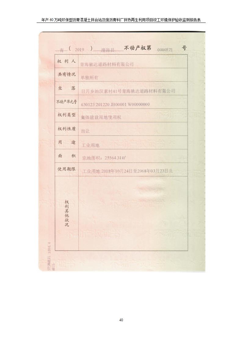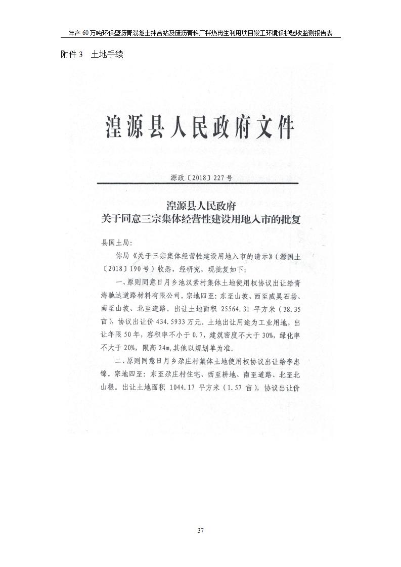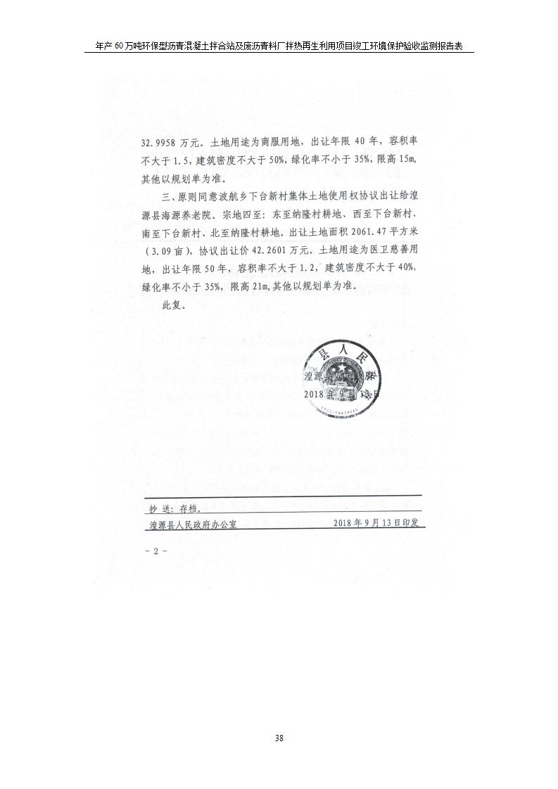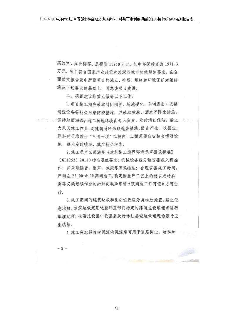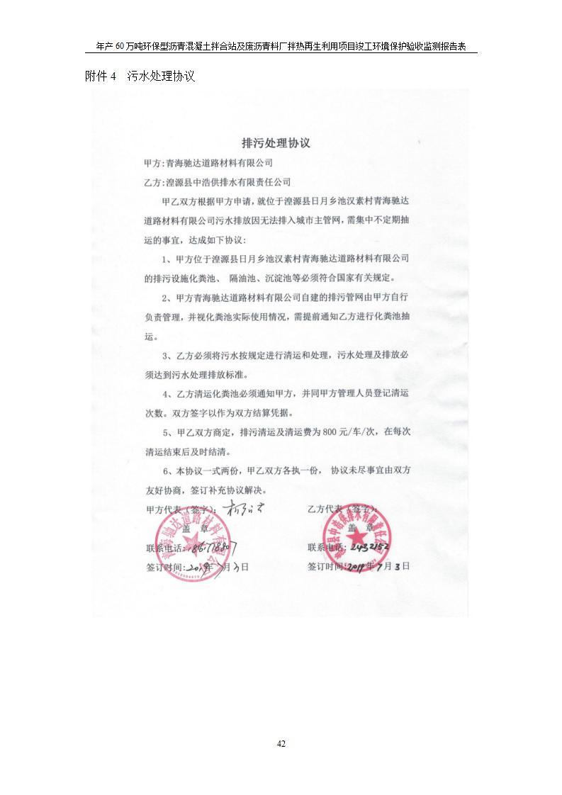 根據(jù)中華人民共和國(guó)國(guó)務(wù)院令第682號(hào)《國(guó)務(wù)院關(guān)于修改〈建設(shè)項(xiàng)目環(huán)境保護(hù)管理?xiàng)l例〉的決定》和《建設(shè)項(xiàng)目竣工環(huán)境保護(hù)驗(yàn)收暫行辦法》(國(guó)務(wù)院令682號(hào)),青海馳達(dá)道路材料有限公司年產(chǎn)60萬噸環(huán)保型瀝青混凝土拌合站及廢瀝青料廠拌熱再生利用項(xiàng)目竣工環(huán)境保護(hù)驗(yàn)收監(jiān)測(cè)報(bào)告表公示如下。 一、項(xiàng)目名稱:年產(chǎn)60萬噸環(huán)保型瀝青混凝土拌合站及廢瀝青料廠拌熱再生利用項(xiàng)目竣工環(huán)境保護(hù)驗(yàn)收監(jiān)測(cè)報(bào)告表 二、地點(diǎn):湟源縣日月藏族鄉(xiāng)池漢素村 三、建設(shè)單位:青海馳達(dá)道路材料有限公司 四、建設(shè)內(nèi)容:本項(xiàng)目共有2條瀝青砼生產(chǎn)線及1條穩(wěn)定土生產(chǎn)線,配套辦公樓等。 五、聯(lián)系人:楊工 六、聯(lián)系電 話:0971-6515411 七、公示時(shí)間:二〇二〇年七月六日至二〇二〇年七月三十一日 公示期間,對(duì)上述公示內(nèi)容如有異議,請(qǐng)以書面形式反饋,個(gè)人須署真實(shí)姓名,單位須加蓋公章。
