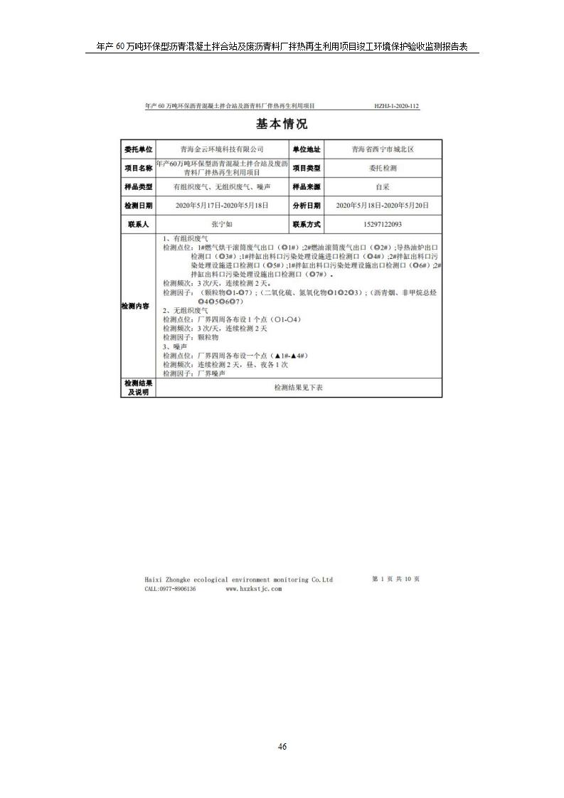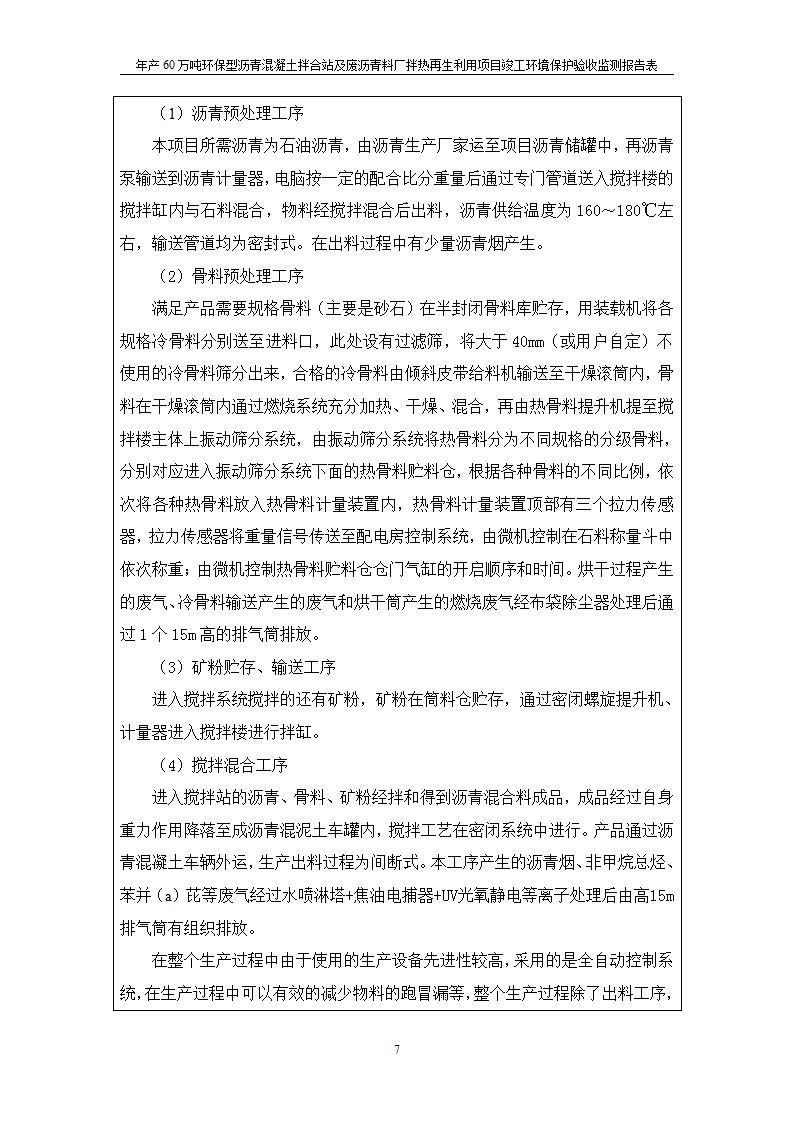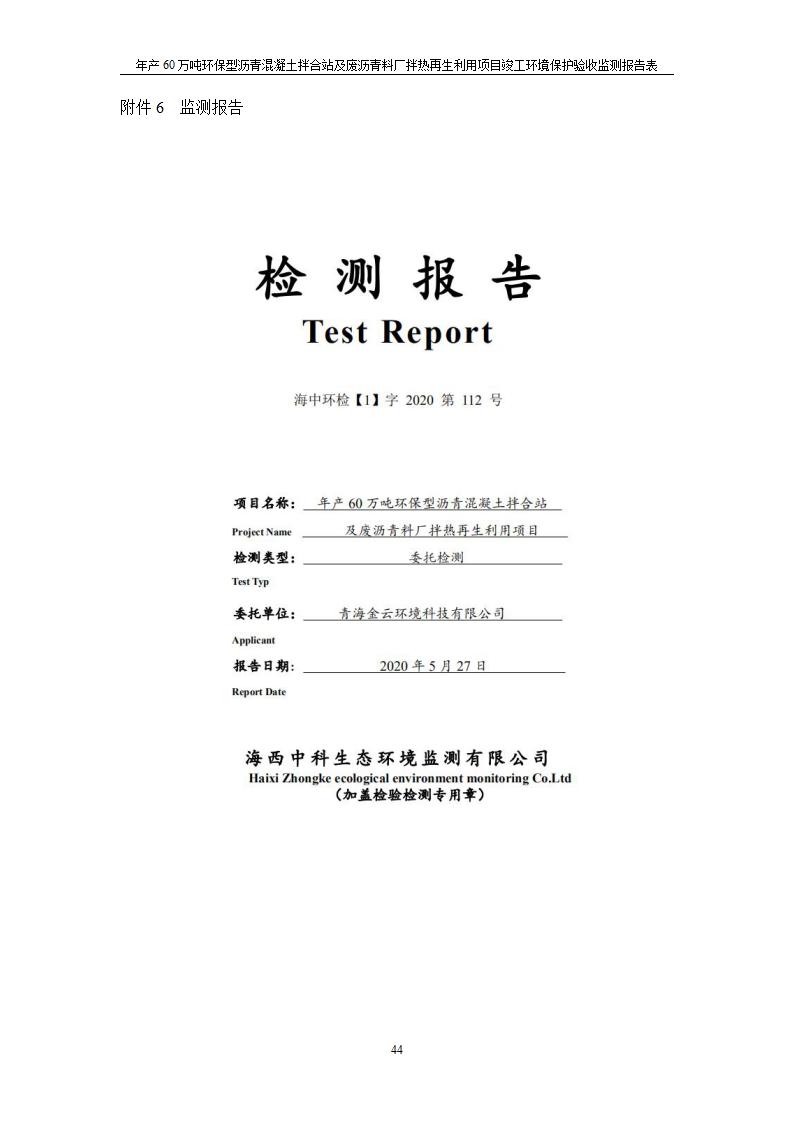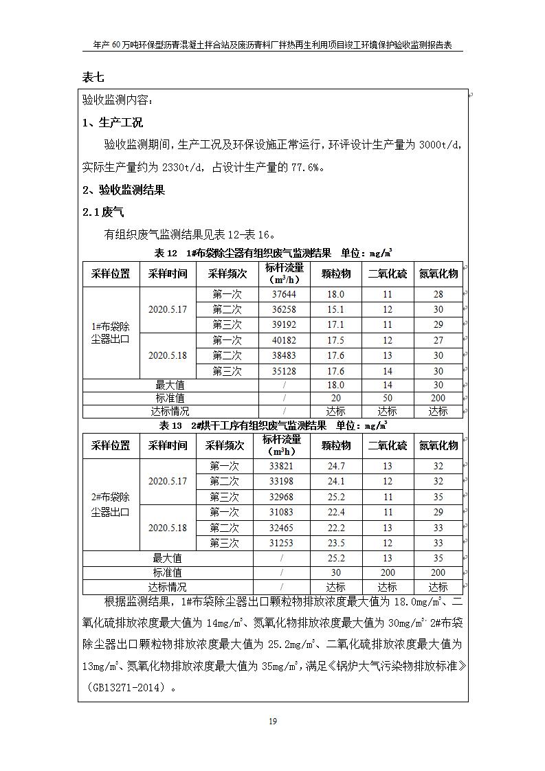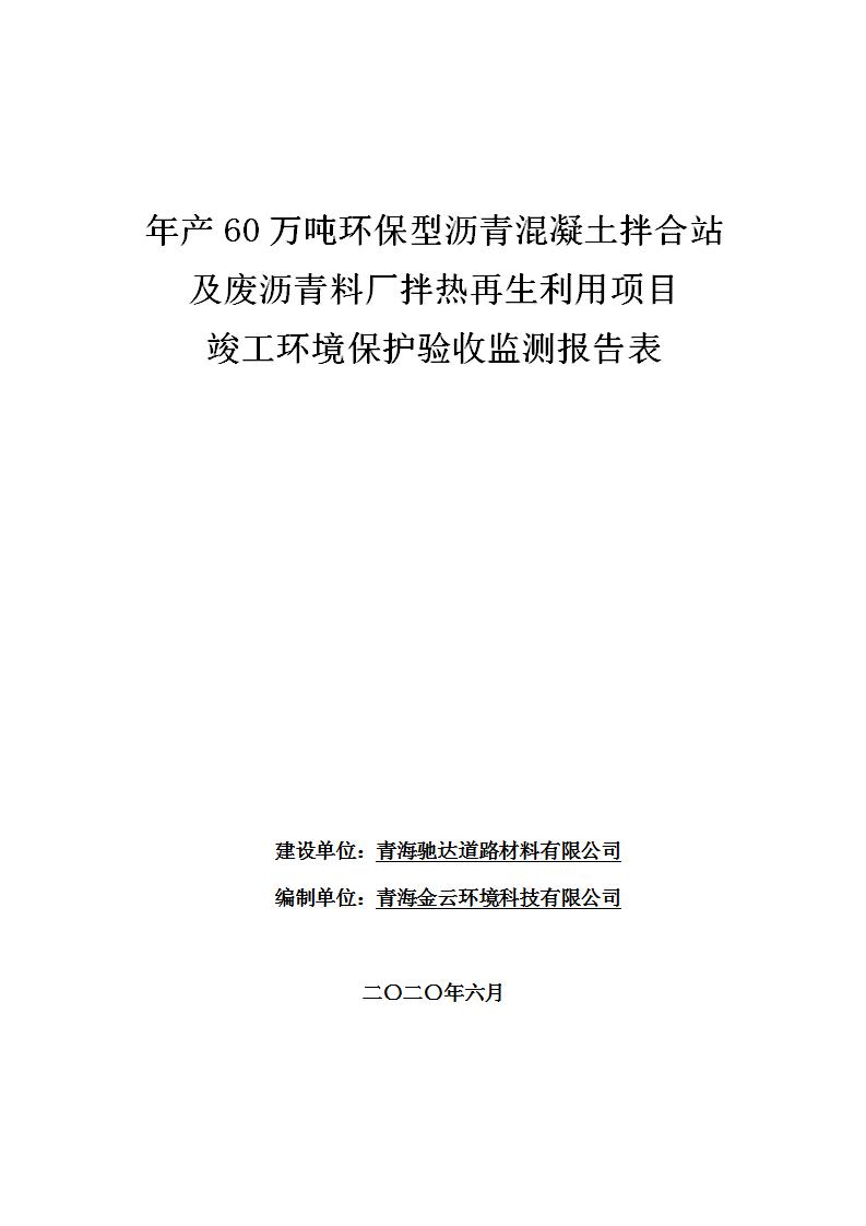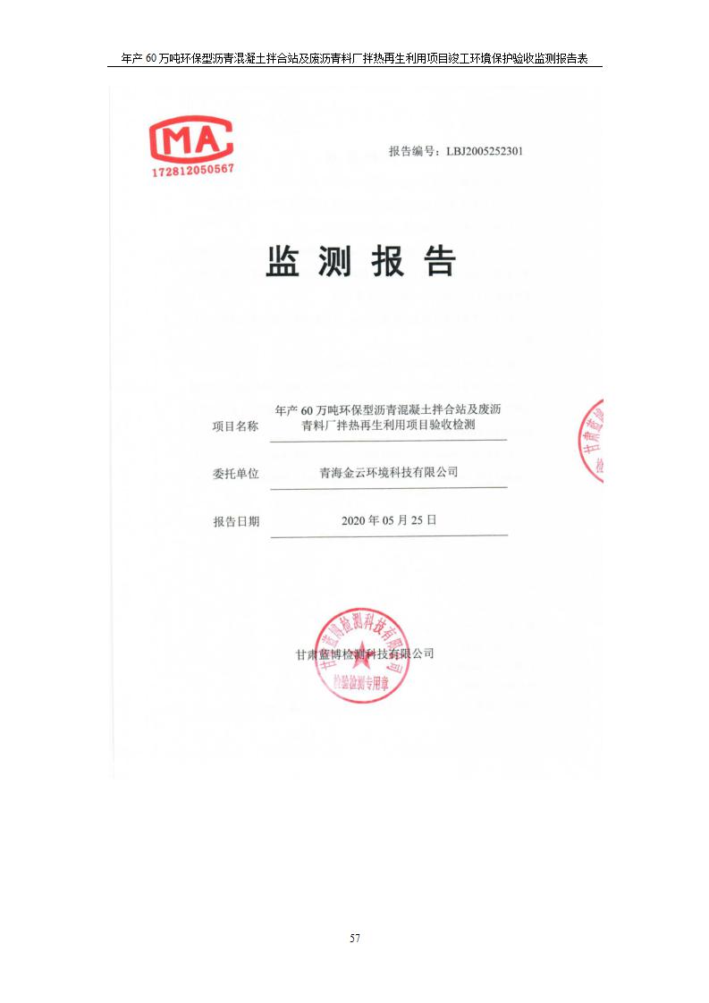 年產(chǎn)60萬噸環(huán)保型瀝青混凝土拌合站及廢瀝青料廠拌熱再生利用項(xiàng)目竣工環(huán)境保護(hù)驗(yàn)收監(jiān)測(cè)報(bào)告表公示發(fā)布日期:(2020-7-6) 點(diǎn)擊次數(shù):3797 |