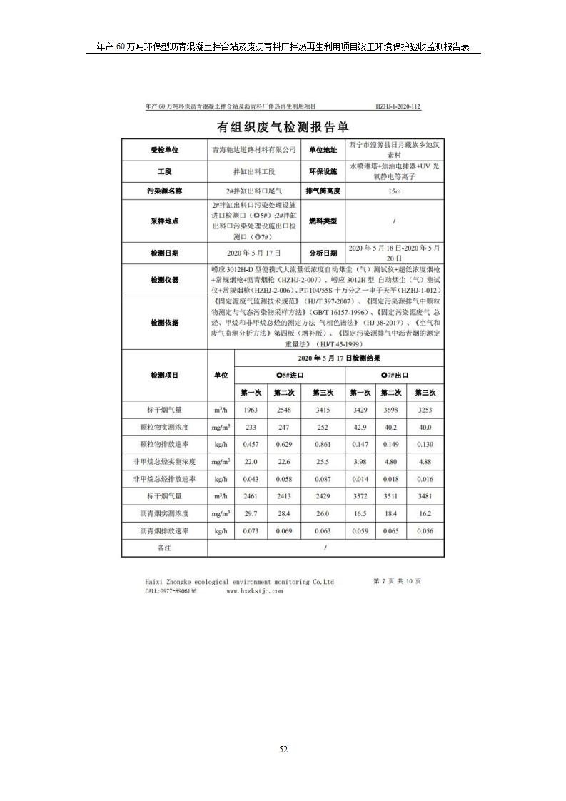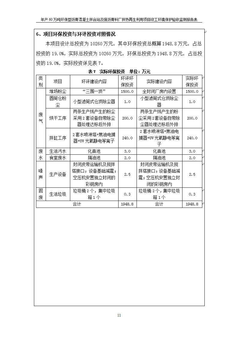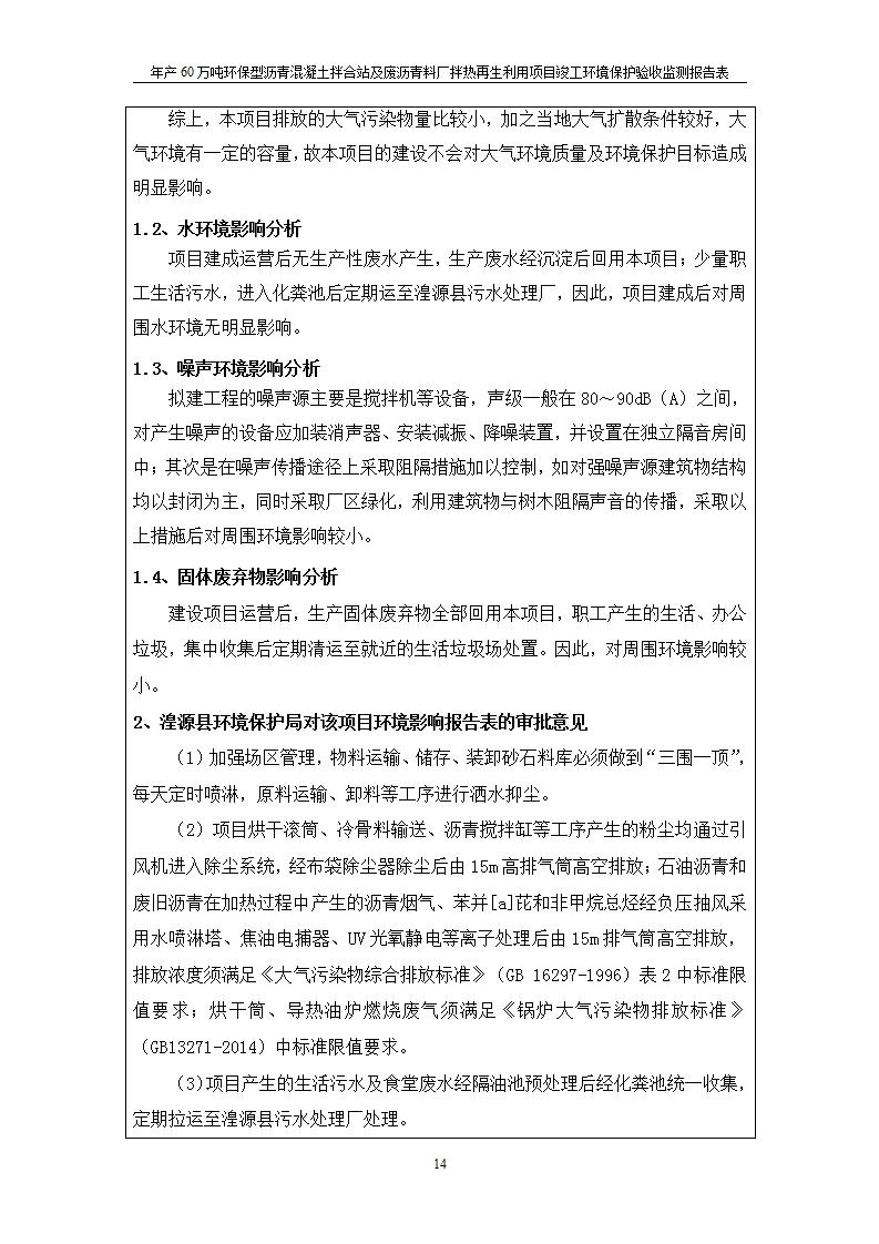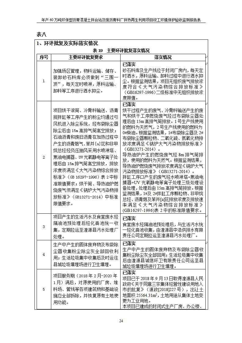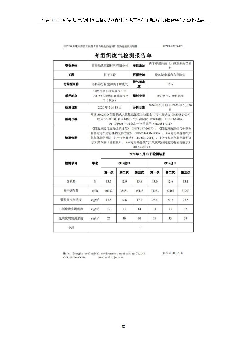 年產(chǎn)60萬噸環(huán)保型瀝青混凝土拌合站及廢瀝青料廠拌熱再生利用項(xiàng)目竣工環(huán)境保護(hù)驗(yàn)收監(jiān)測(cè)報(bào)告表公示發(fā)布日期:(2020-7-6) 點(diǎn)擊次數(shù):3797 |