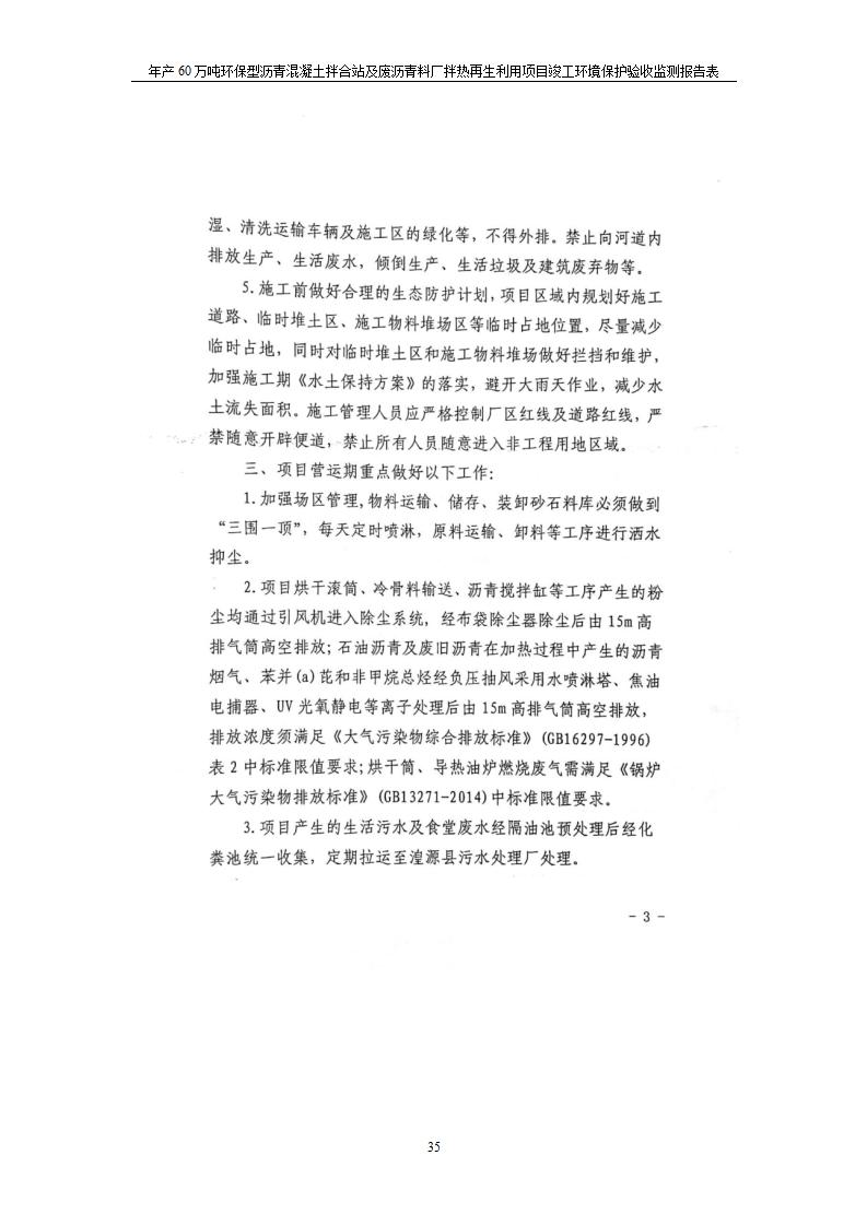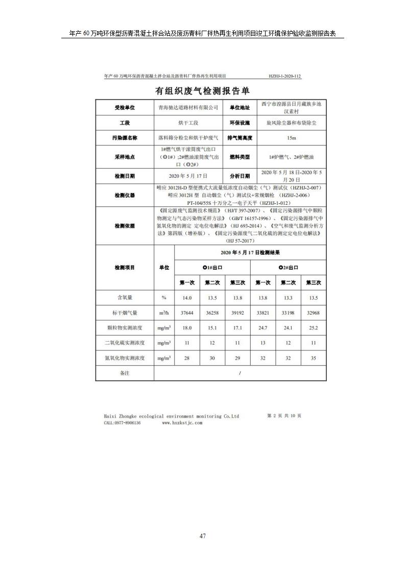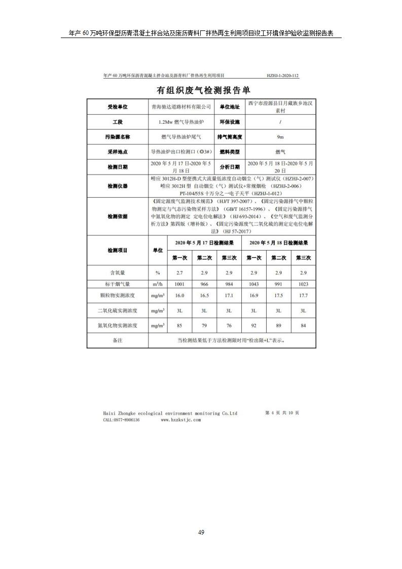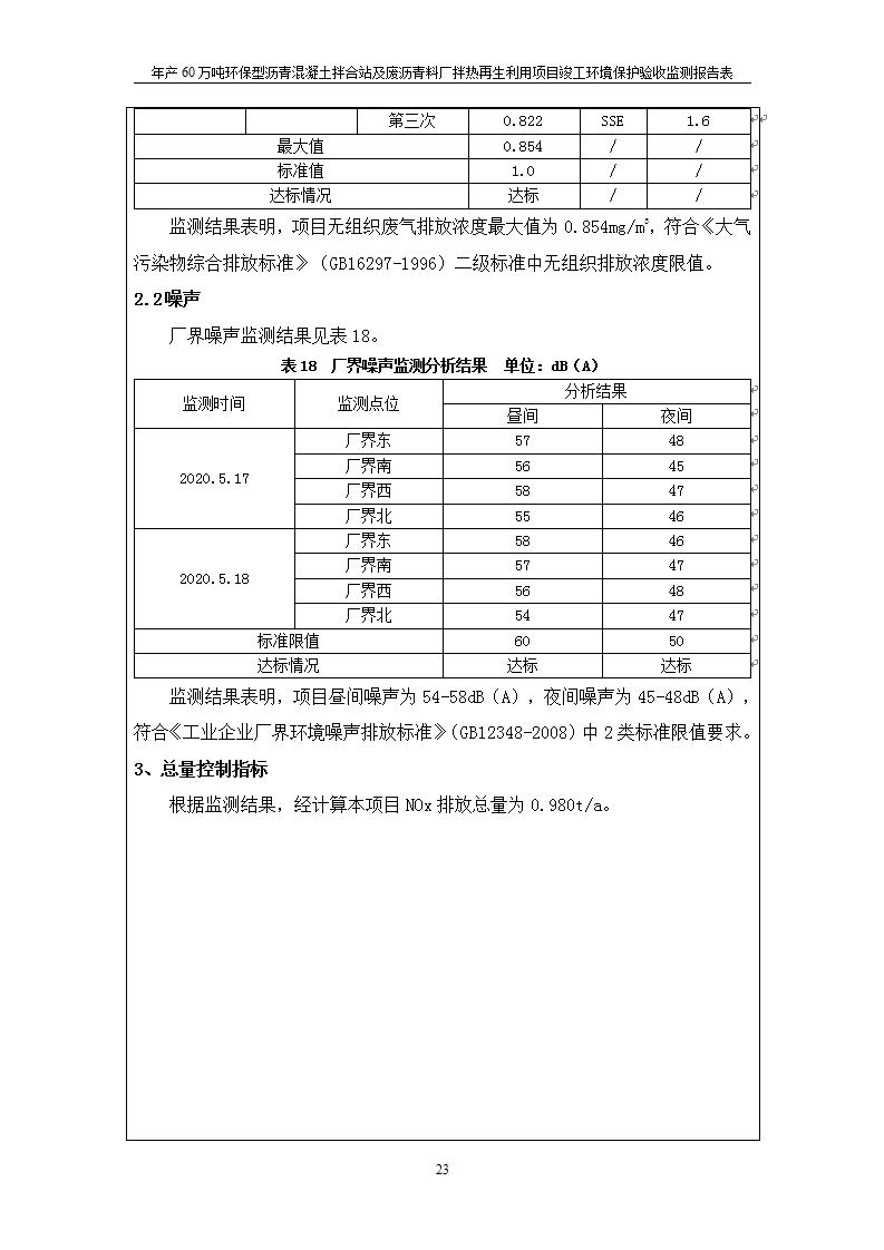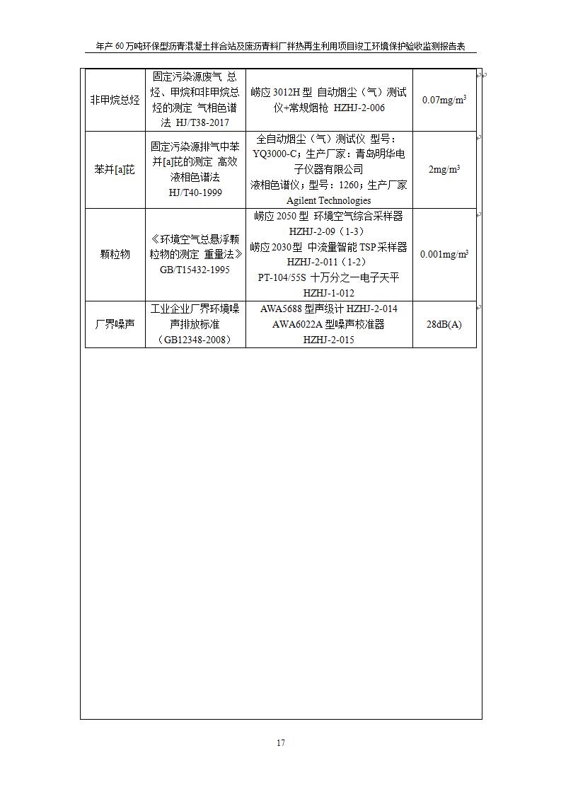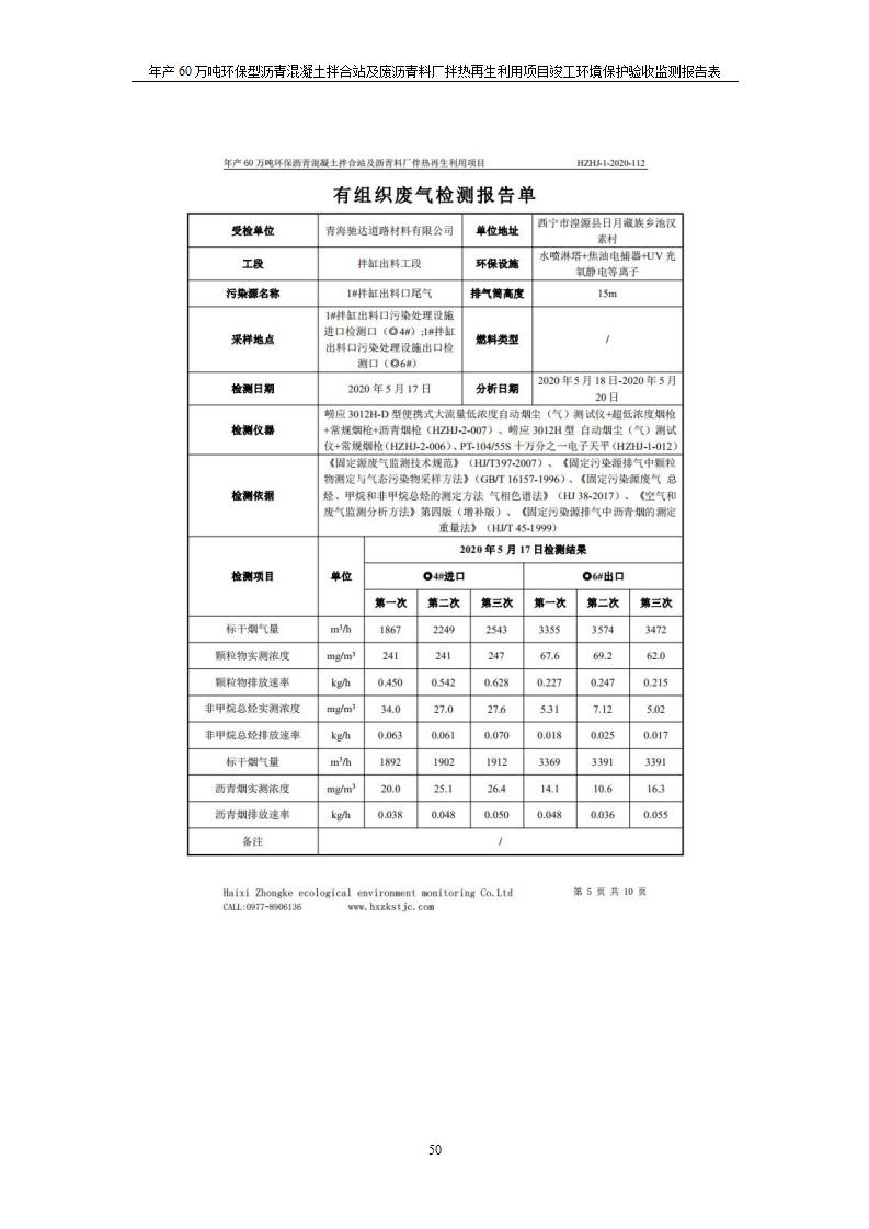年產(chǎn)60萬噸環(huán)保型瀝青混凝土拌合站及廢瀝青料廠拌熱再生利用項(xiàng)目竣工環(huán)境保護(hù)驗(yàn)收監(jiān)測(cè)報(bào)告表公示發(fā)布日期:(2020-7-6) 點(diǎn)擊次數(shù):3797 |