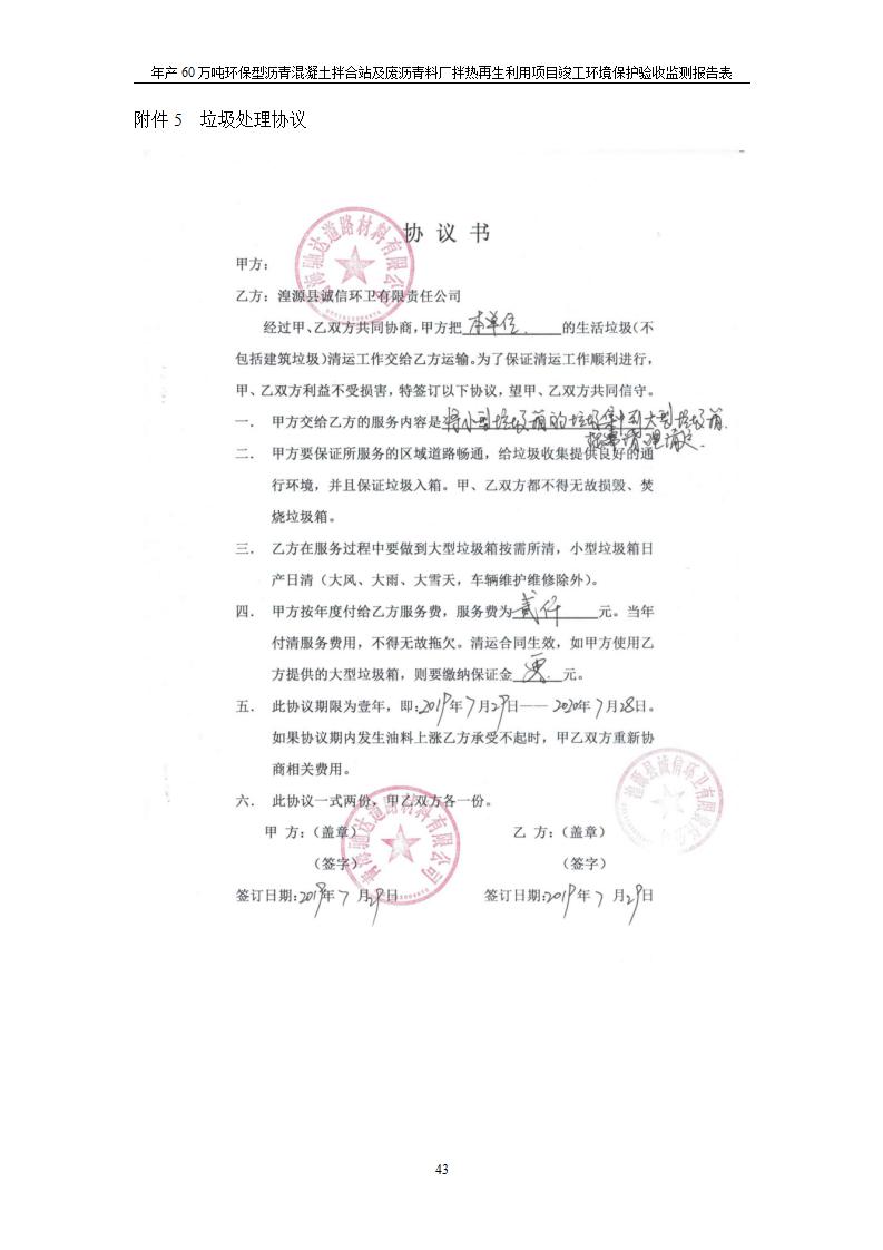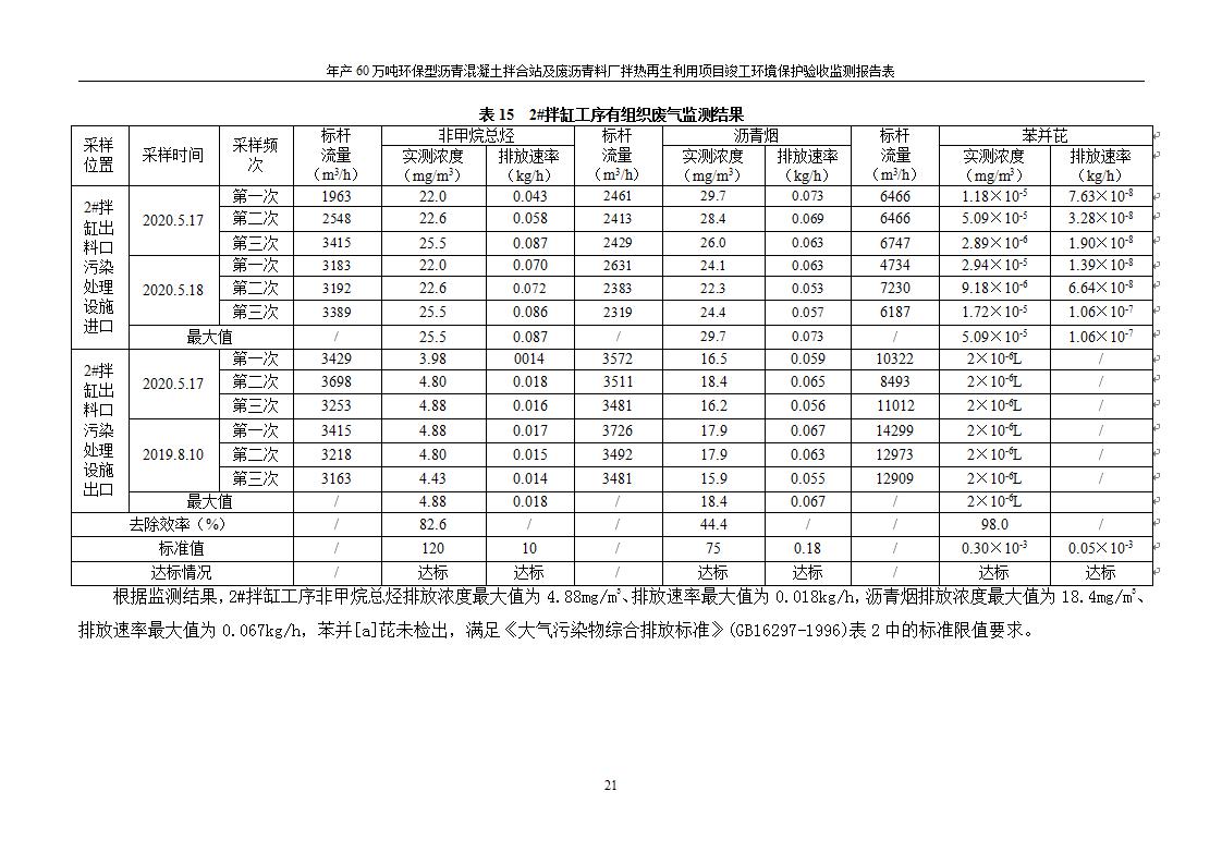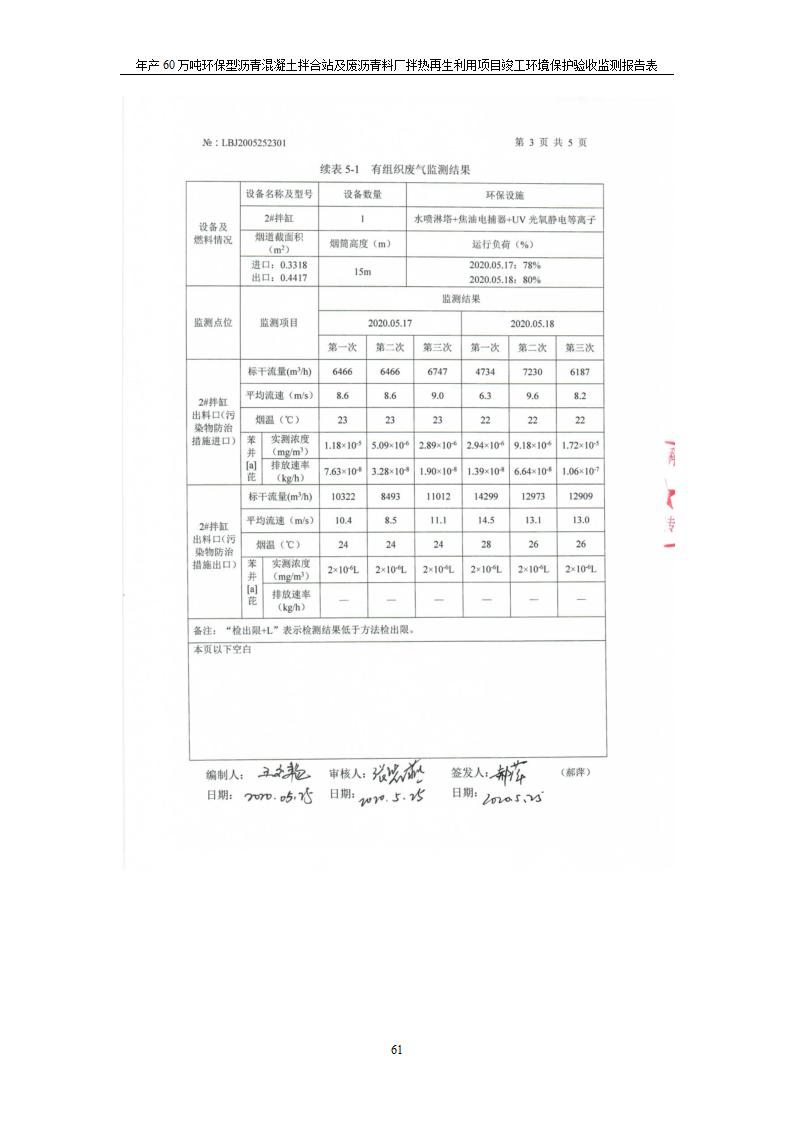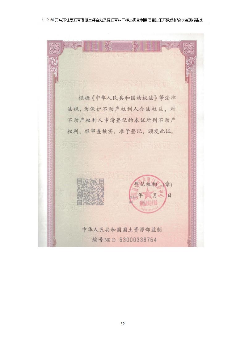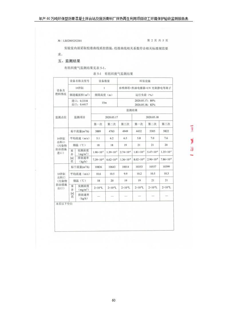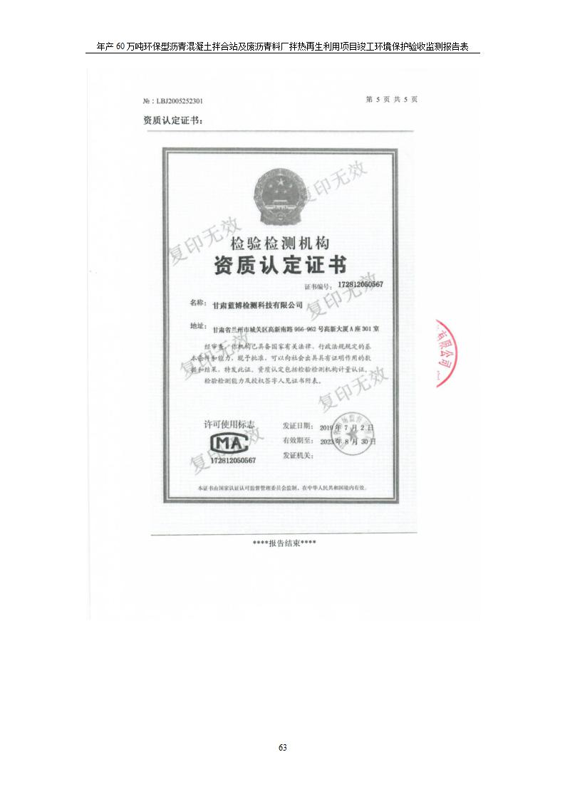 年產(chǎn)60萬噸環(huán)保型瀝青混凝土拌合站及廢瀝青料廠拌熱再生利用項(xiàng)目竣工環(huán)境保護(hù)驗(yàn)收監(jiān)測(cè)報(bào)告表公示發(fā)布日期:(2020-7-6) 點(diǎn)擊次數(shù):3797 |